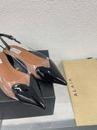ALAIA LE COEUR FLAT SLINGBACKS IN BLACK PATENT LAMBSKIN