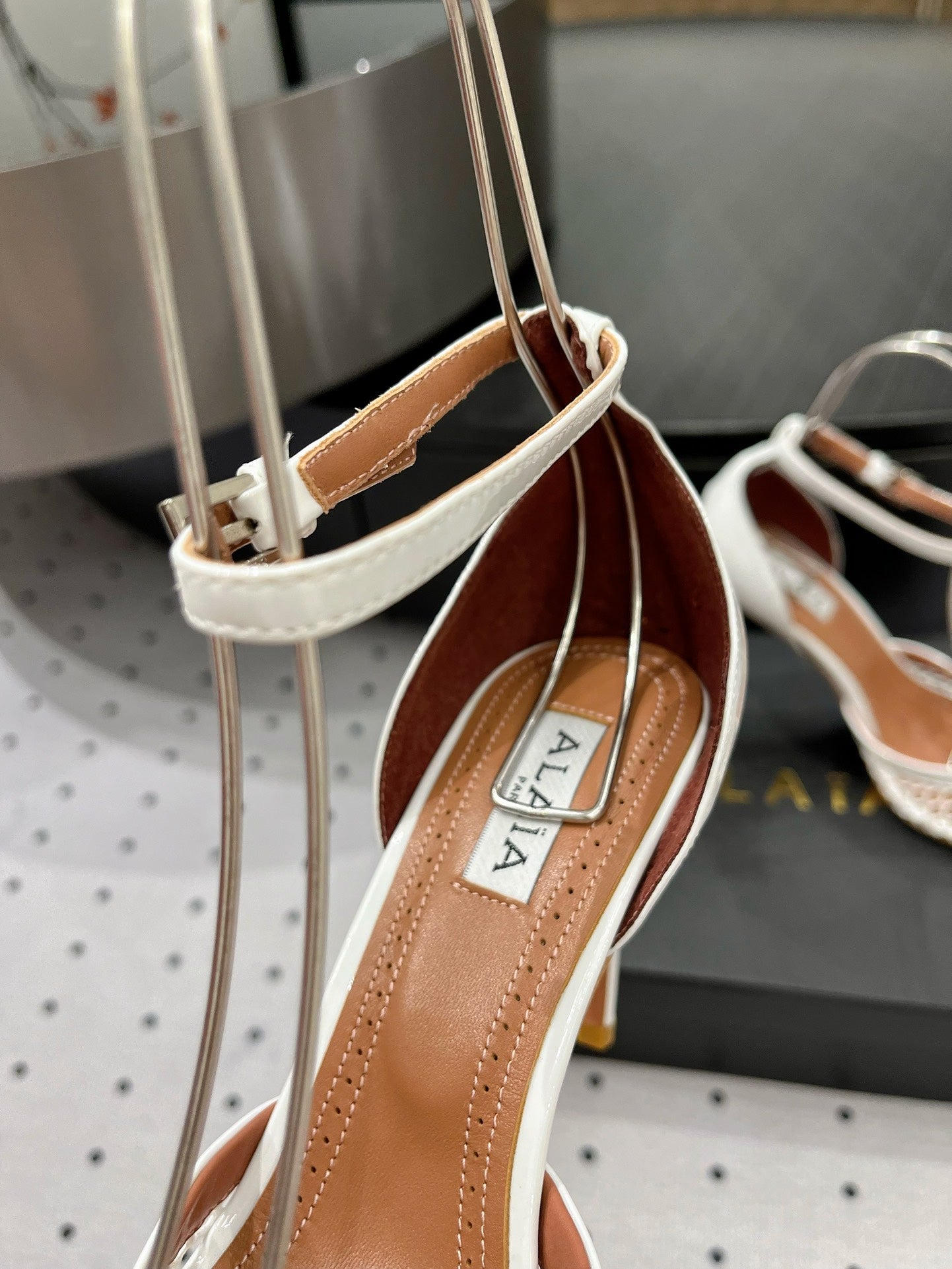 Alaila High Fishnet Pumps 90mm In White Mesh Fabric 954850