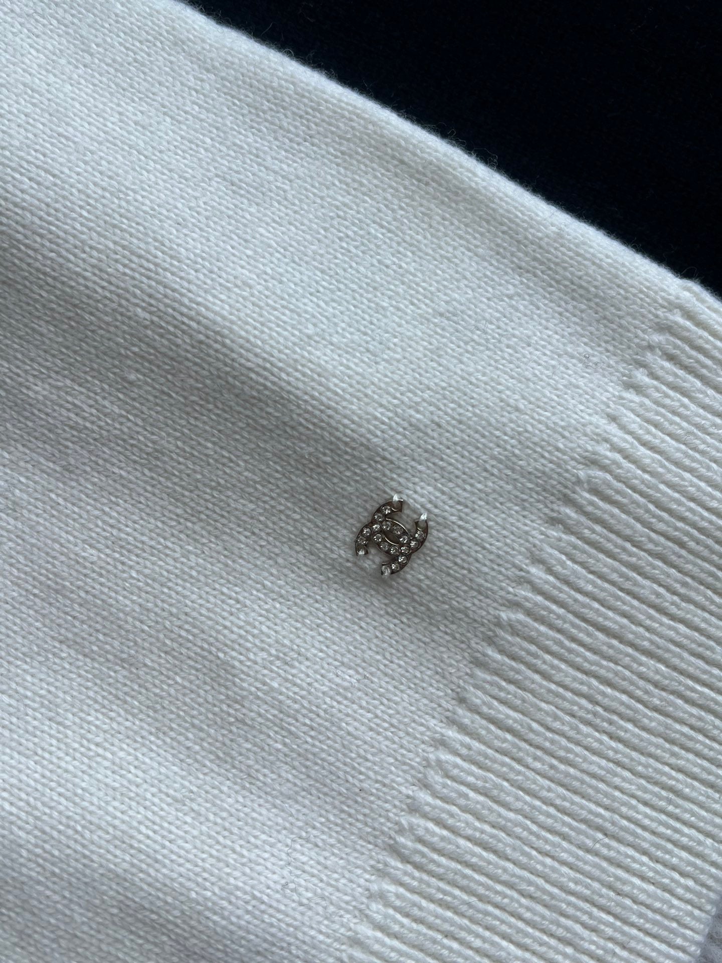 Chanel 25 Deer Print Sweater White mix Black Wool 318394