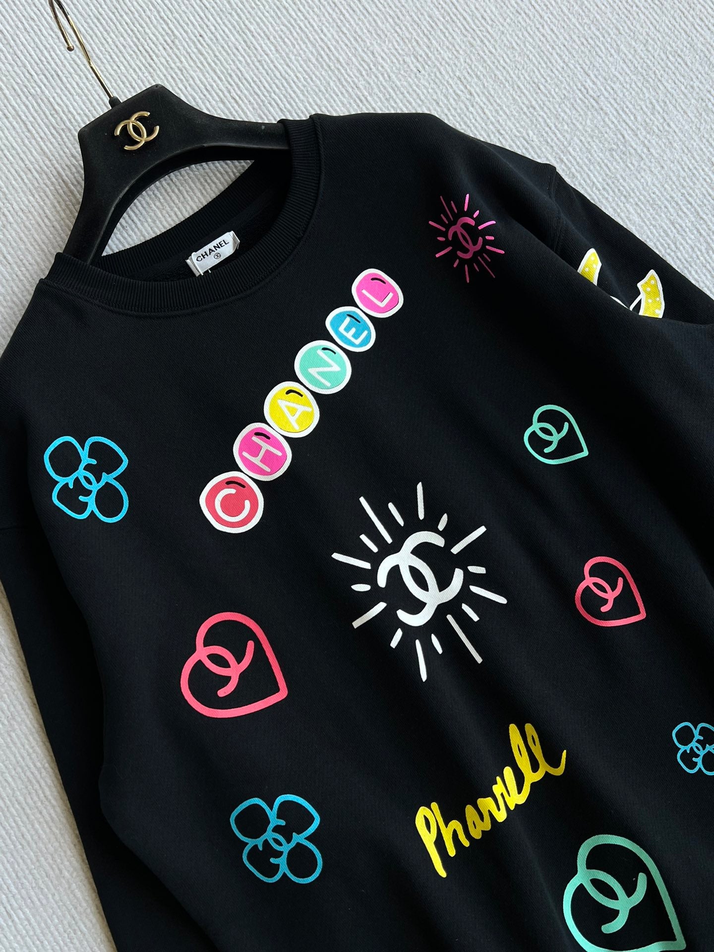 Chanel 25 Graffiti Crew Neck Sweatshirt Black Cotton 312091