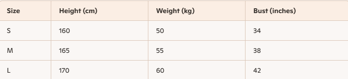 - For more information, please see the size guide below