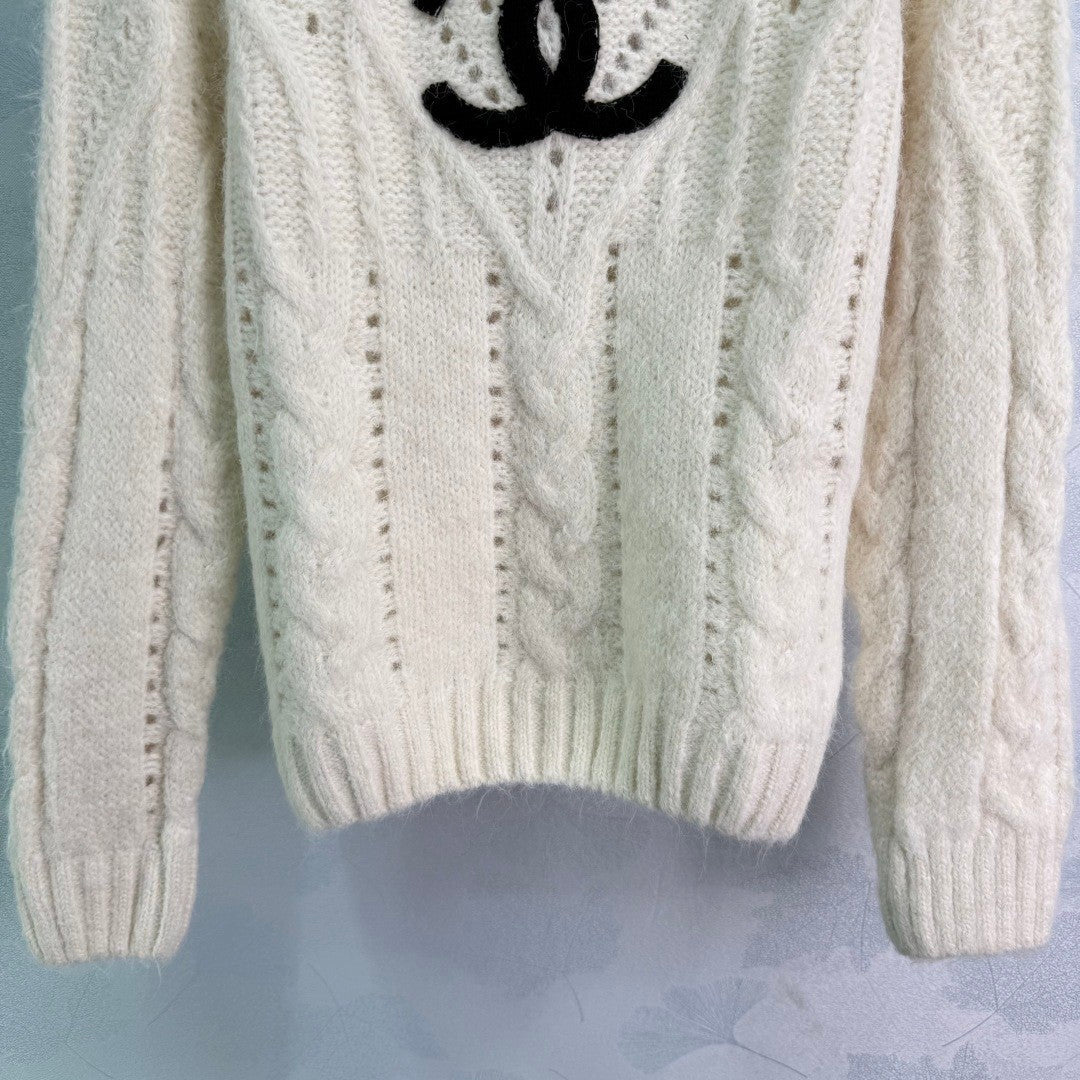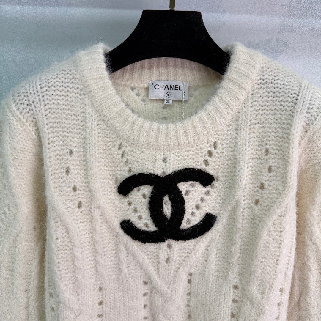 Chanel 25 Deer Print Sweater White mix Black Wool 318394