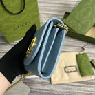 BLONDIE INTERLOCK MINI SHOULDER BAG 12 IN SKY BLUE CALFSKIN GOLD CHAIN