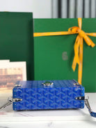 CASSETTE TRUNK BAG 21 IN BLUE GOYARDINE CANVAS & CLAMECY COWHIDE