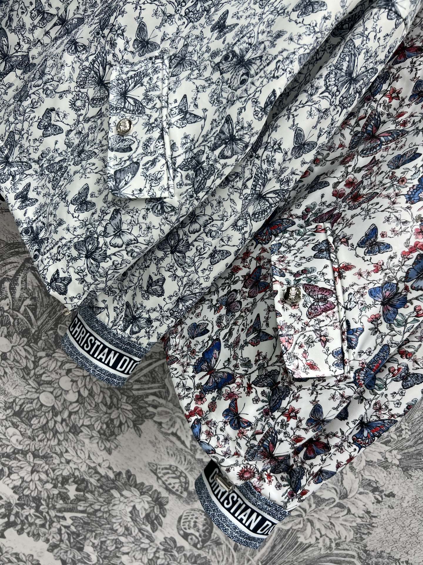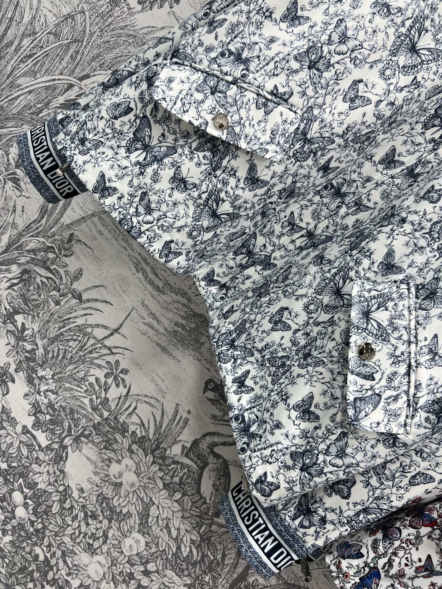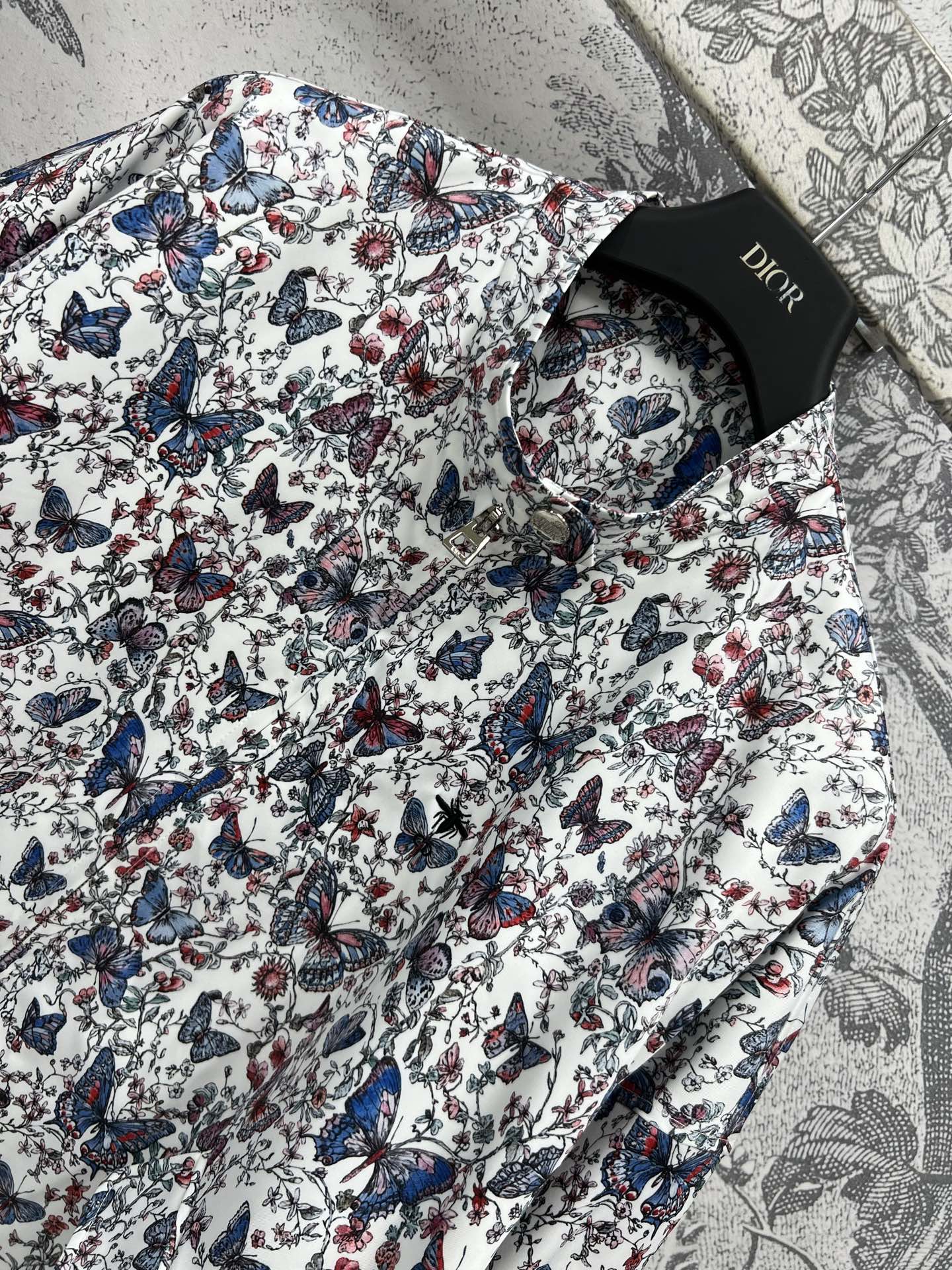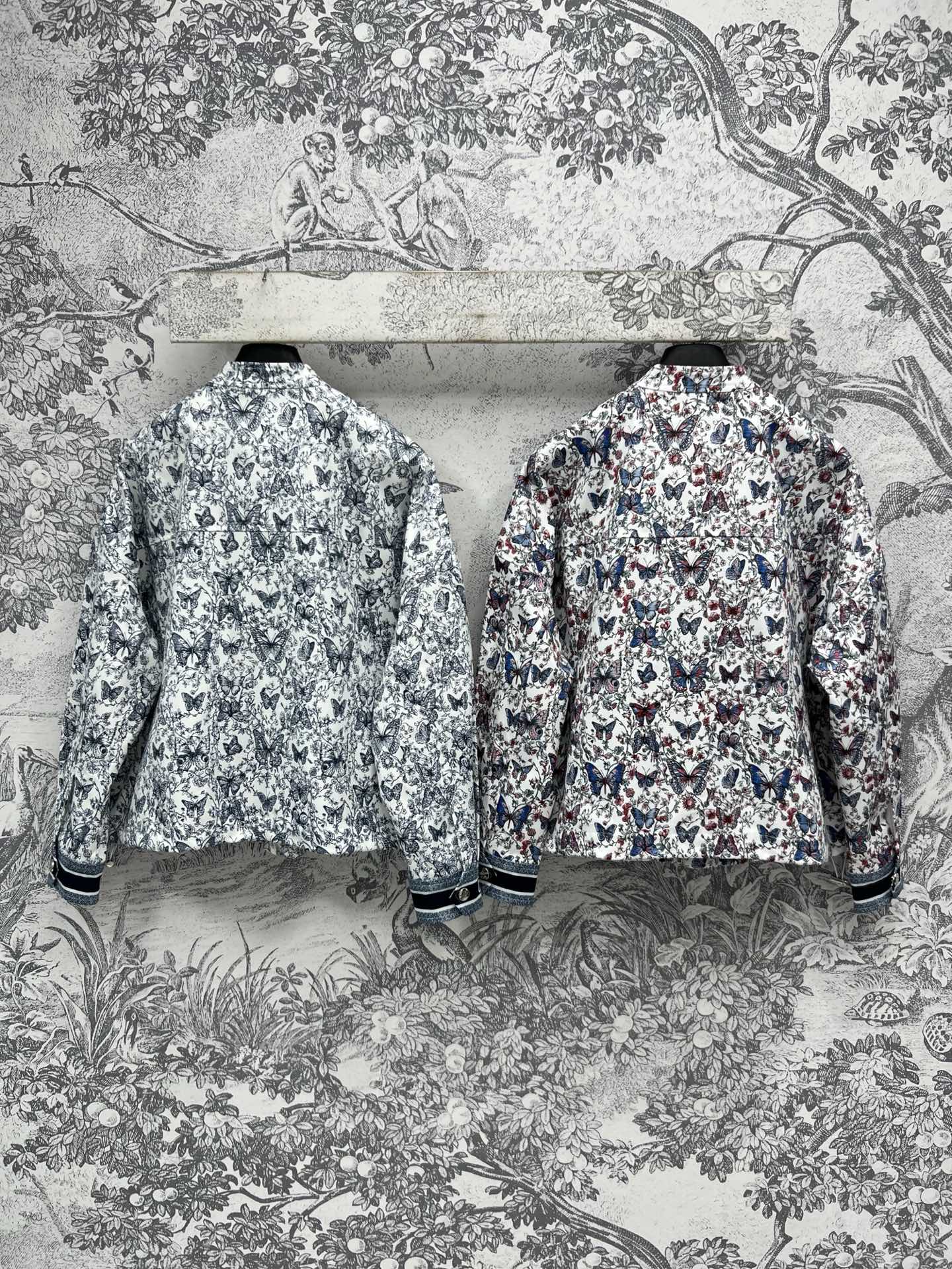 CD 25 Butterfly Floral Print Stand Collar Jacket Polyester