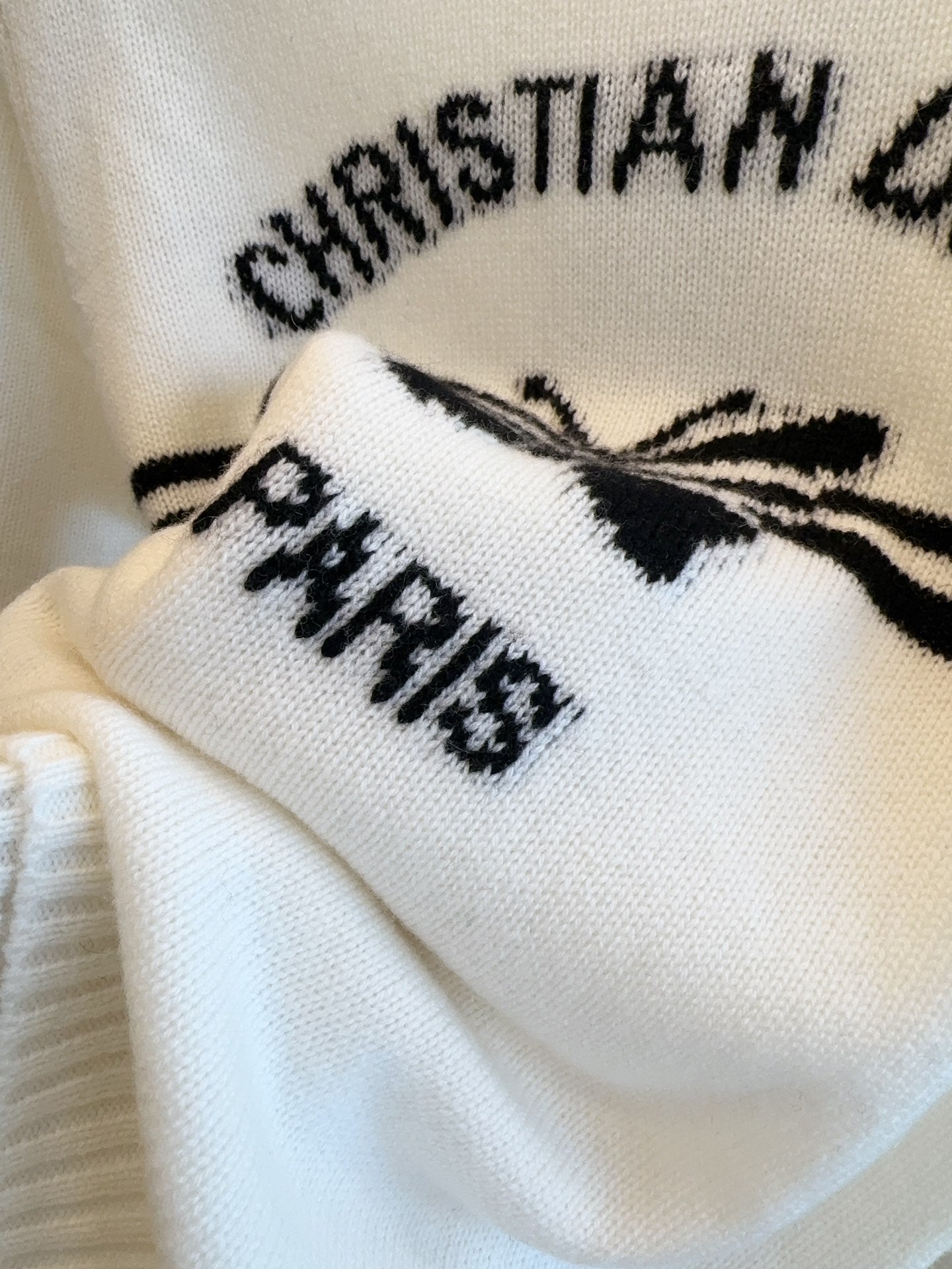 CD 25 Butterfly Knitted Short Sleeves Top White Black Cotton