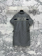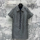 CD 25 Short Sleeve Dress Black Beige Polyester