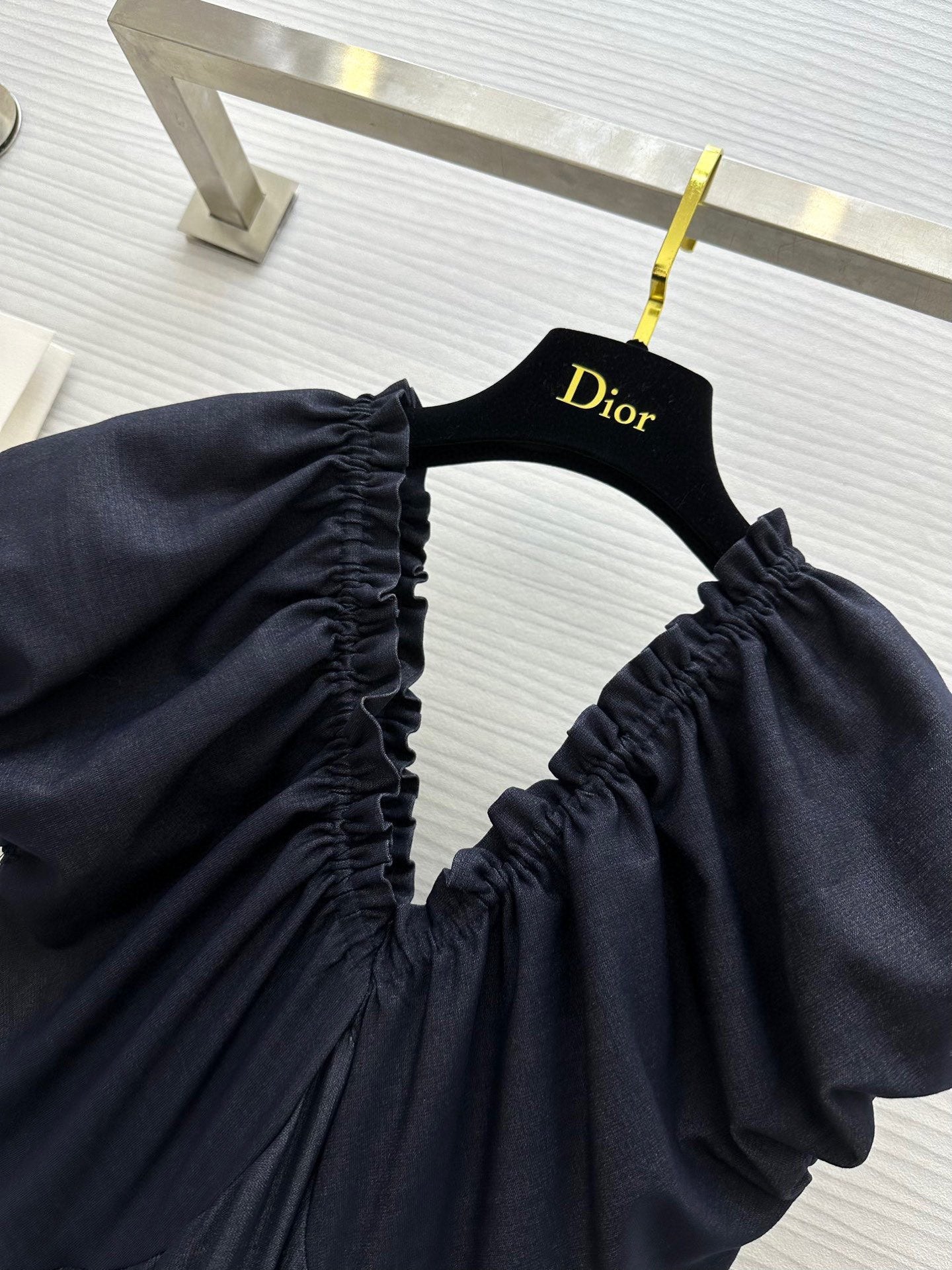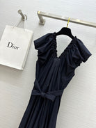 CD 25 V-neck Puff Sleeve Dress black Satin Silk