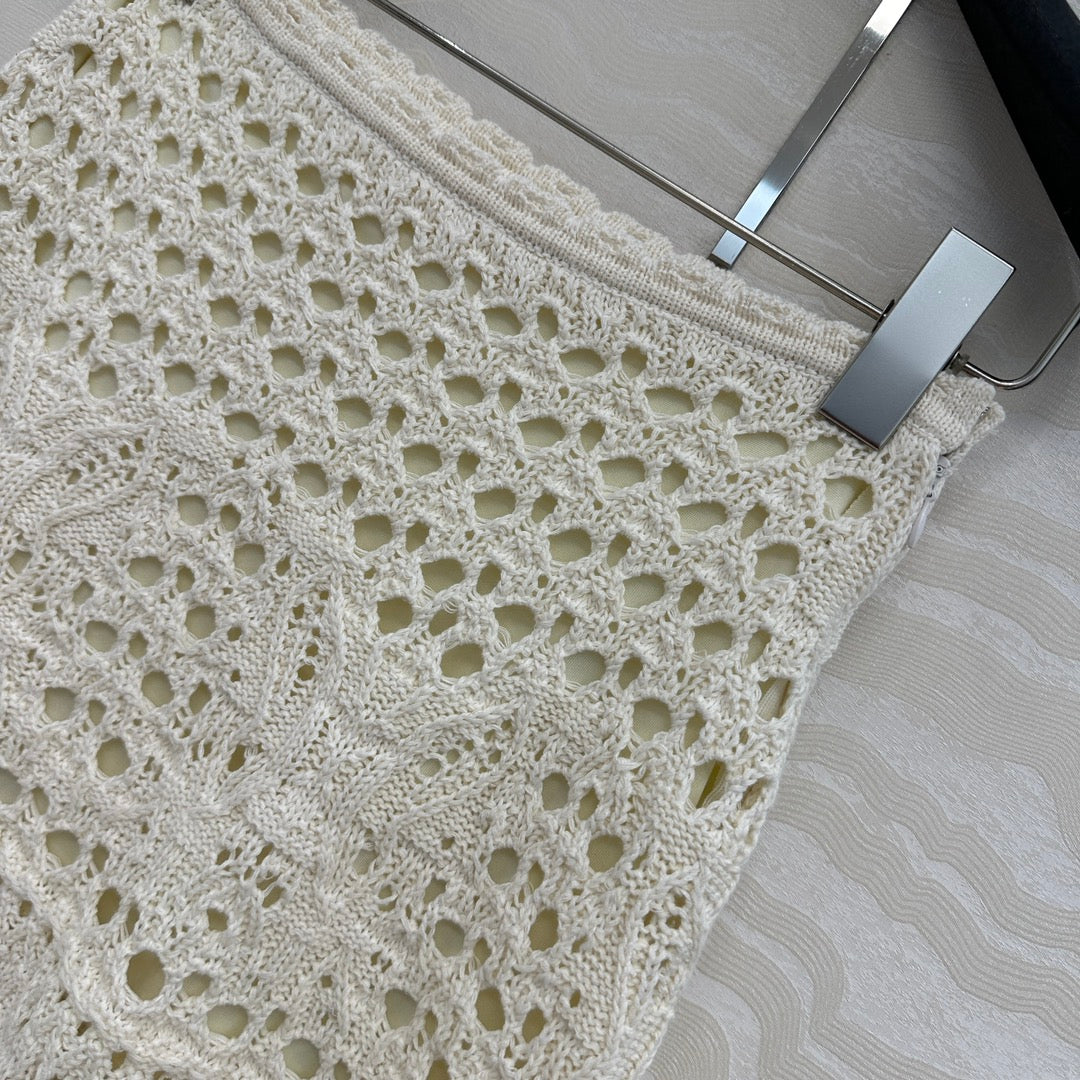 CD Hollow Short Skirt White Cotton Washi