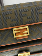 Fend Baguette Green Canvas Bag 27 with FF Embroidery Ghw