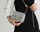 FLAP BAG 17CM GREY LAMBSKIN GOLD HARDWARE