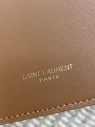 FLAT SHOULDER BAG 23 IN TAWNY BROWN CALFSKIN GOLD CHAIN