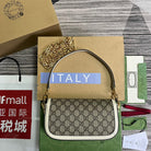GG HORSEBIT 1955 BAG 24 IN BEIGE CANVAS AND WHITE CALFSKIN