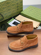 GG Horsebit Ankle Boot Light Brown Suede
