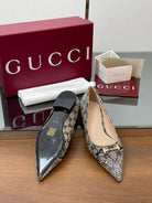 GG Horsebit Ballet Flat Beige Black Monogram Canvas Crystal-Embellished