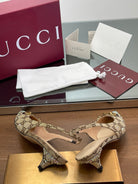 GG Horsebit Slingback 45MM Beige Ebony Monogram Canvas Point Toe Crystal-Embellished