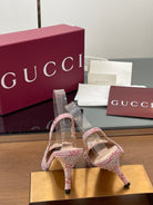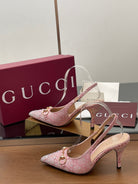 GG Horsebit Slingback 45MM Pink Ebony Monogram Canvas Point Toe Crystal-Embellished
