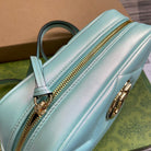 GG MARMONT 24 SMALL MATELASSÉ SHOULDER BAG BLUE IRIDESCENT CALFSKIN