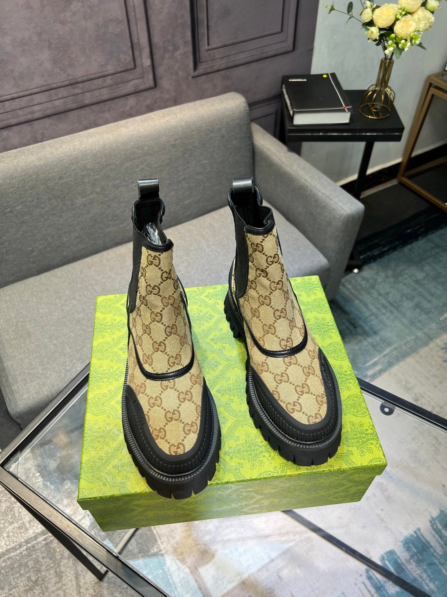 GG Men's 25 Chelsea Boots Black Brown Canvas 720789