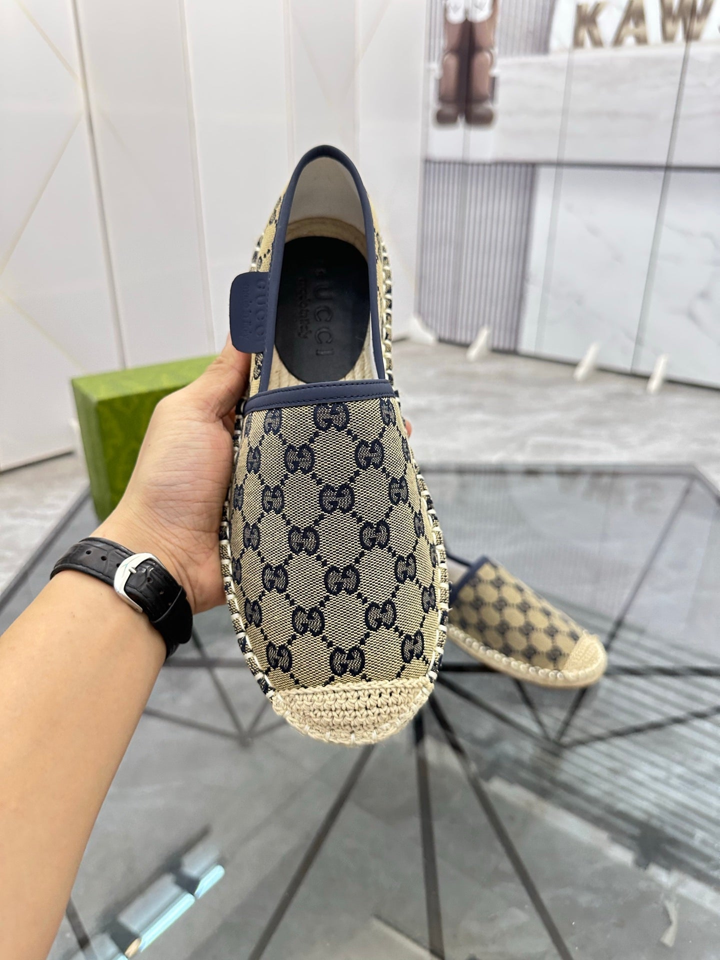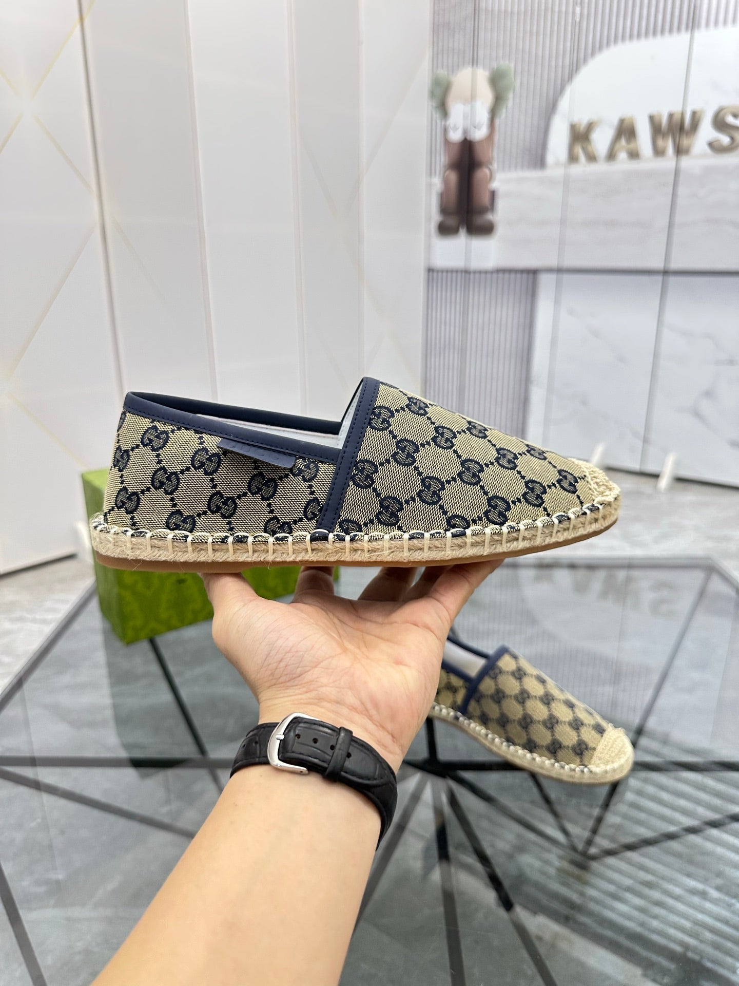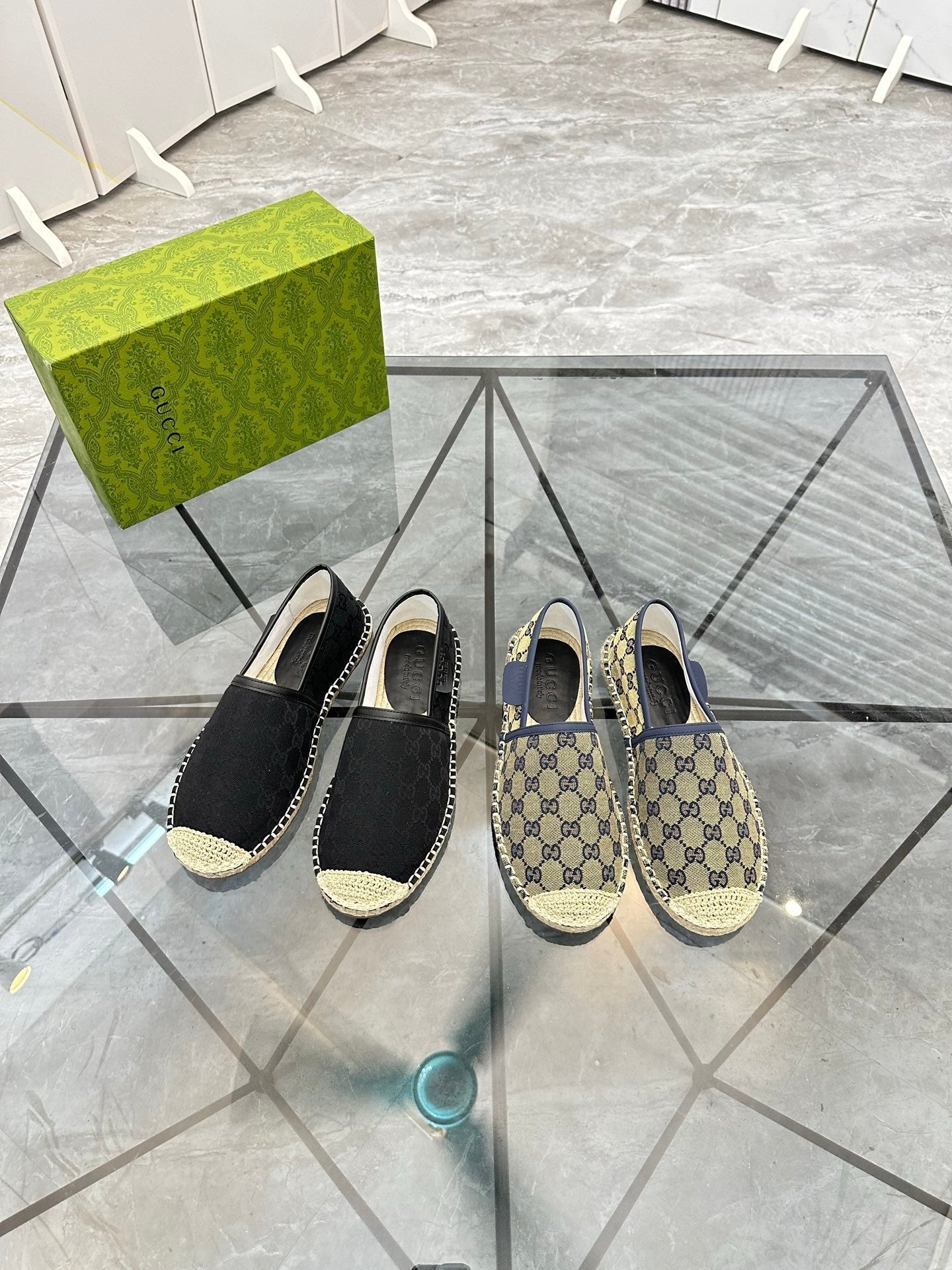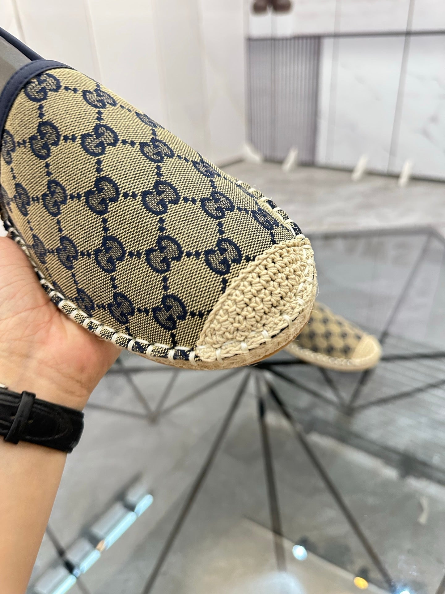 GG Men's Espadrilles Loafer Blue Canvas 738106