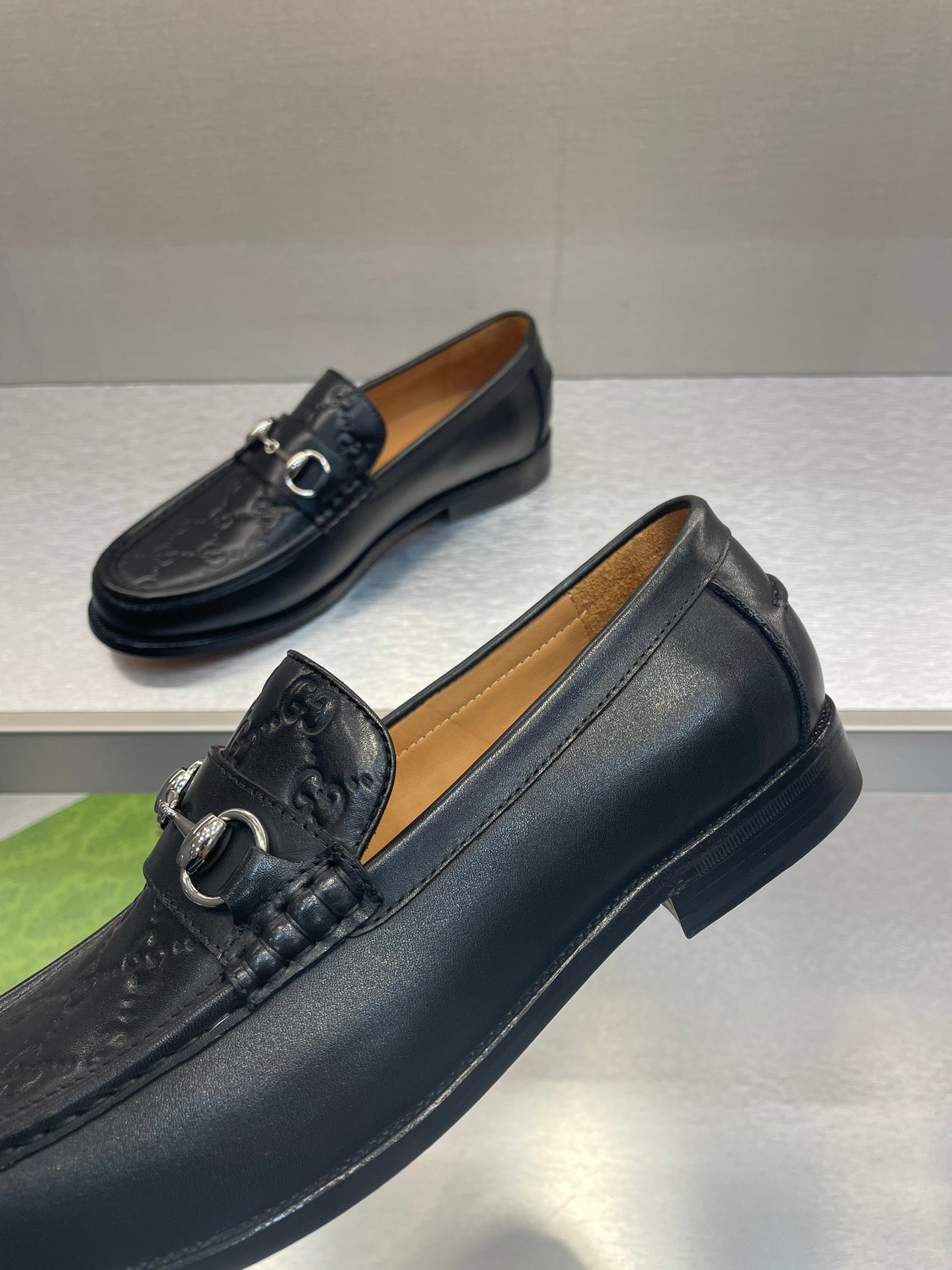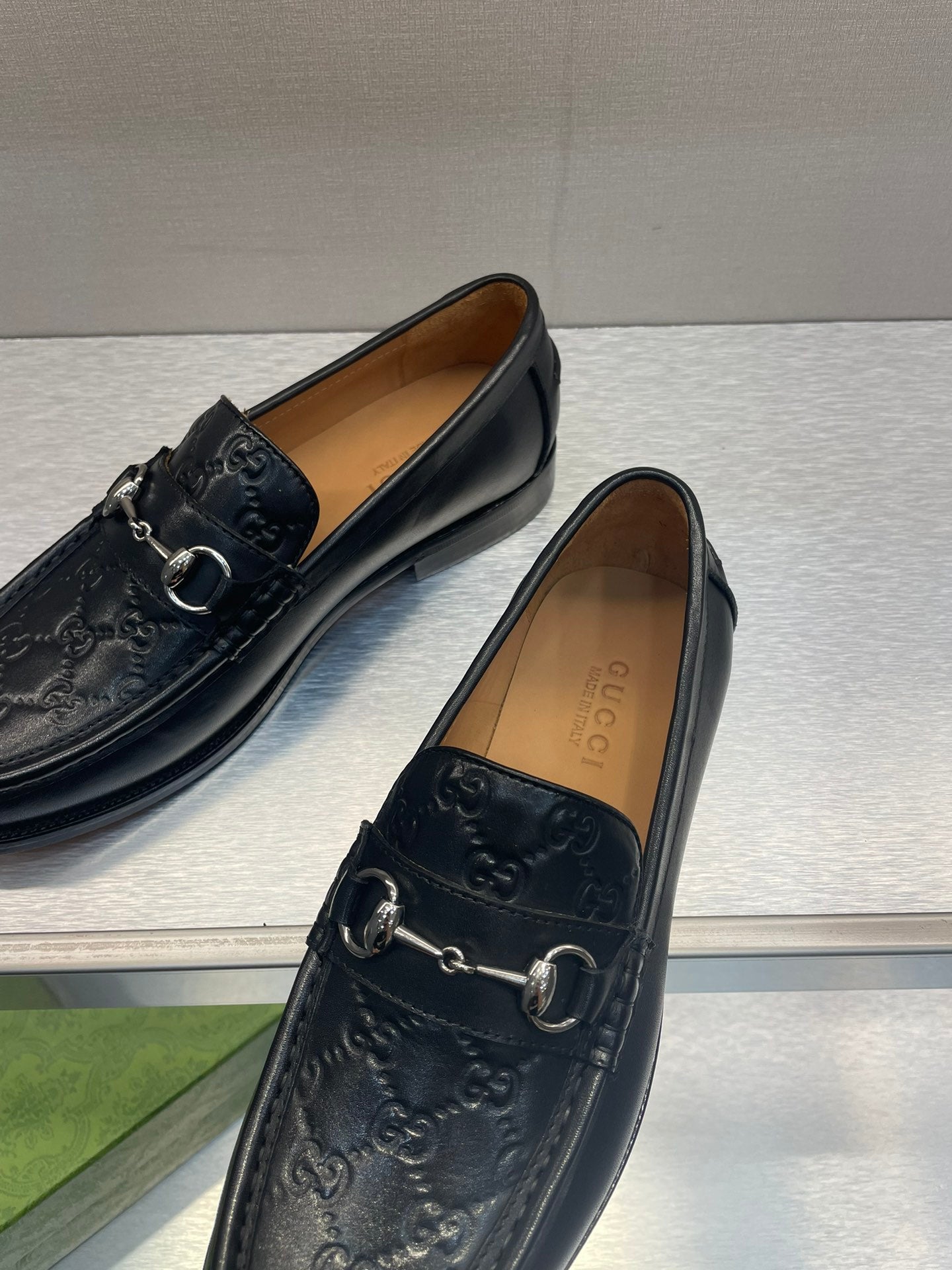 GG Men's Horsebit Loafer Black Embossed Cowhide 542447