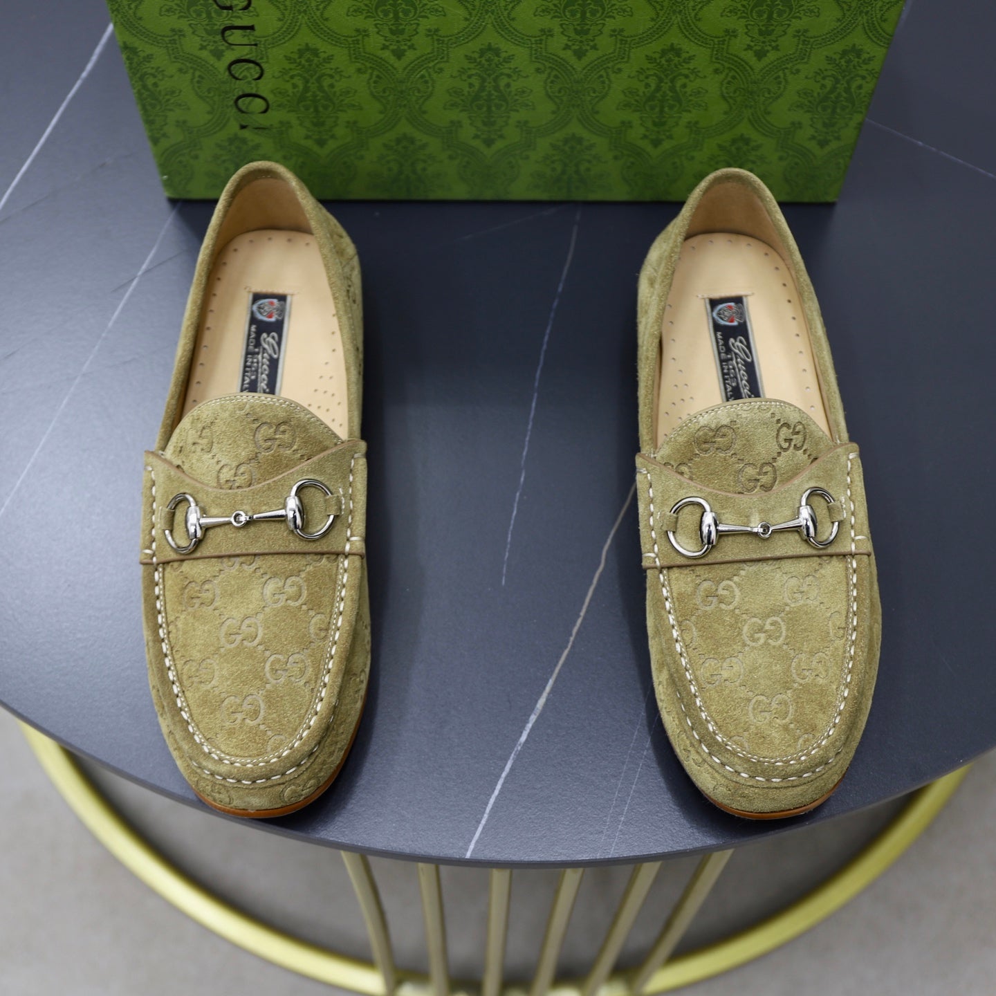 GG Men's Horsebit Loafer Olive Green Suede 600394