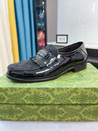 GG Men's Loafer Black Canvas Patent Leather 330406