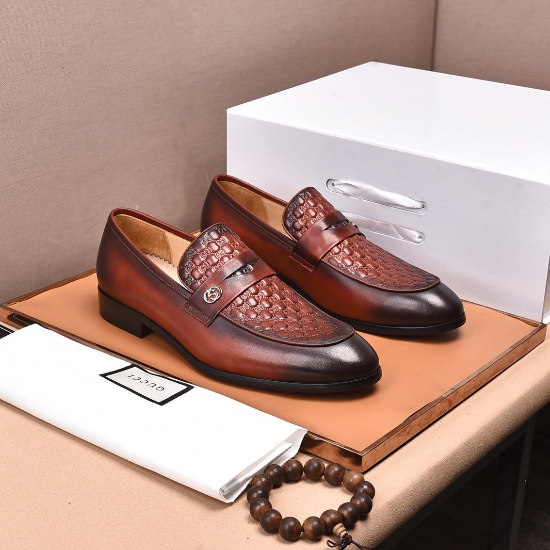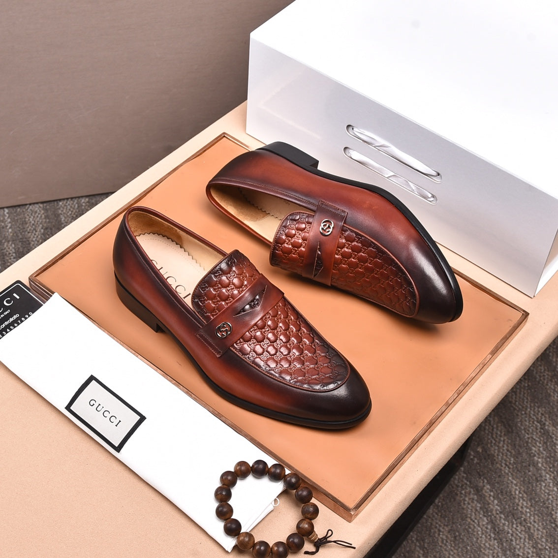 GG Men's Loafer Brown Embossed Cowhide 538717