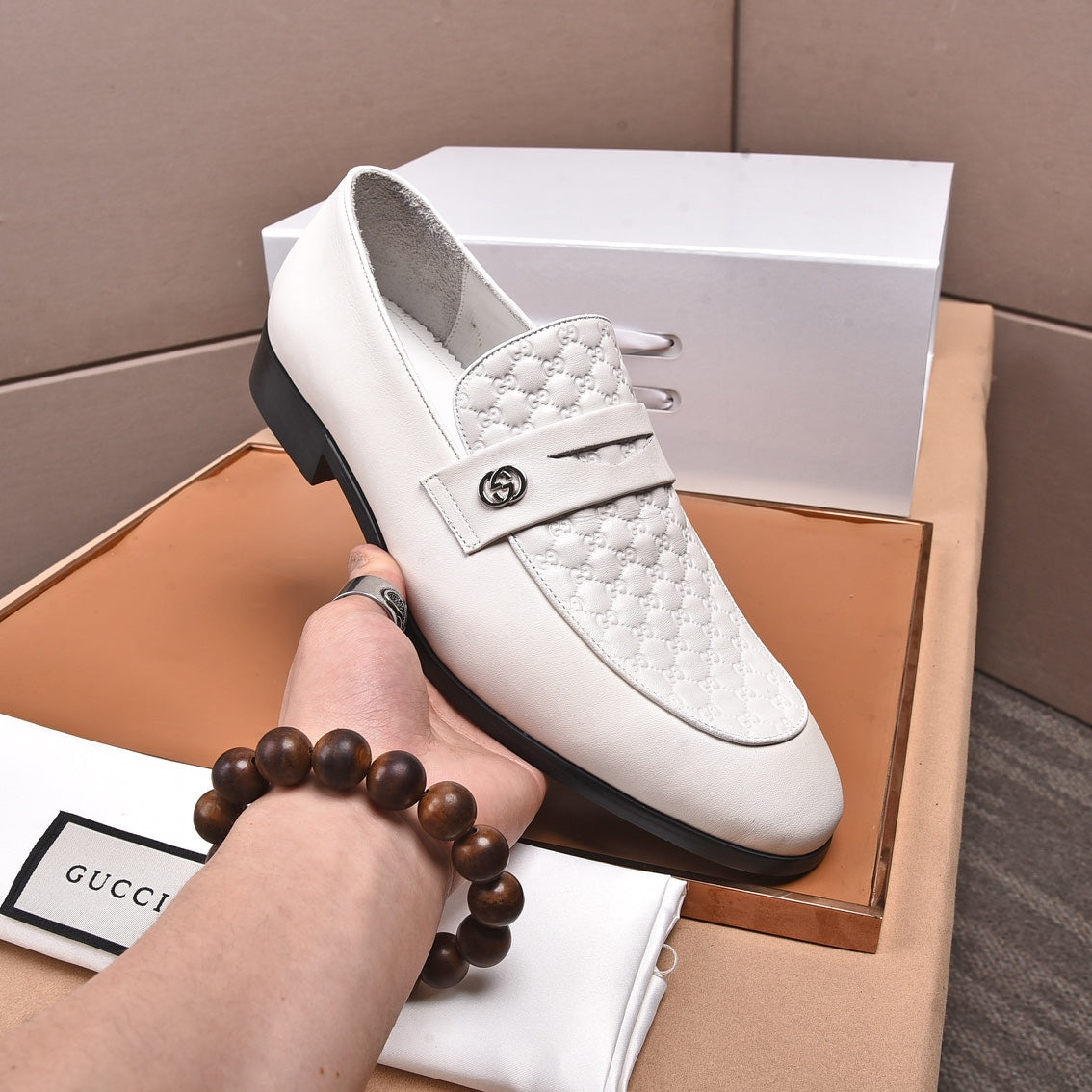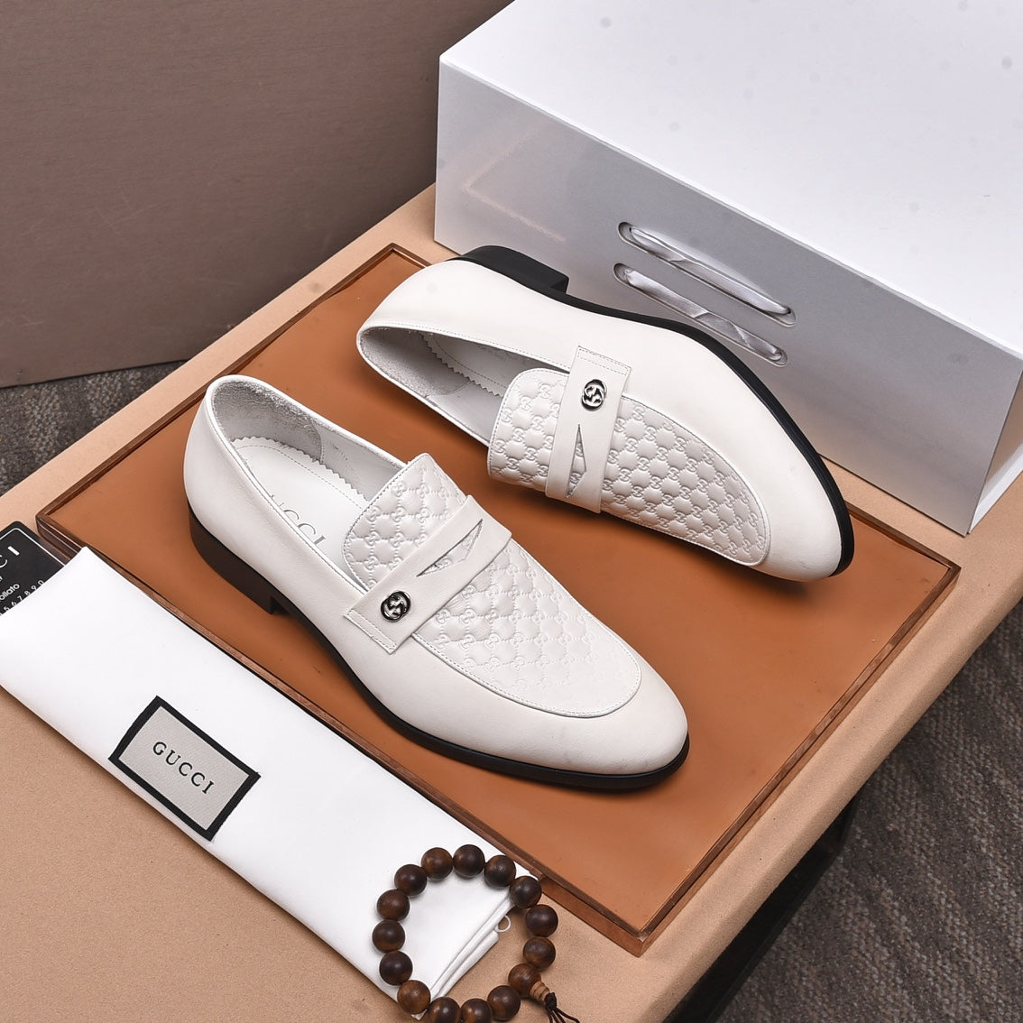 GG Men's Loafer White Embossed Cowhide 538718
