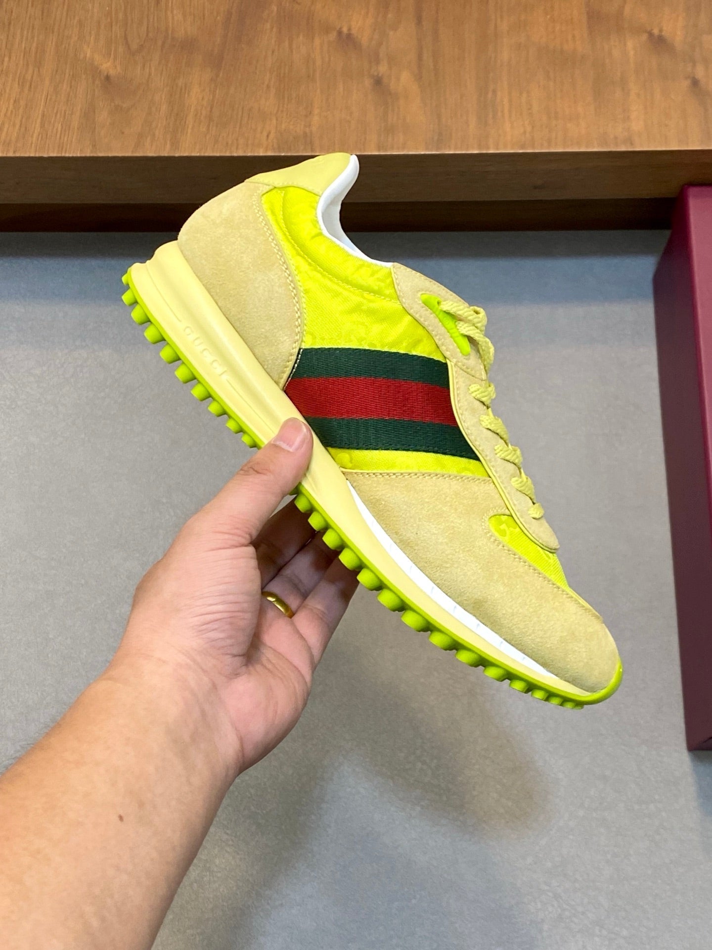GG Men's Re-Motion Sneaker Green Suede Calfskin 709833