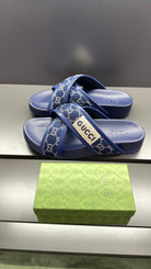 GG Men's Sandals Blue Polyester Leather 547245