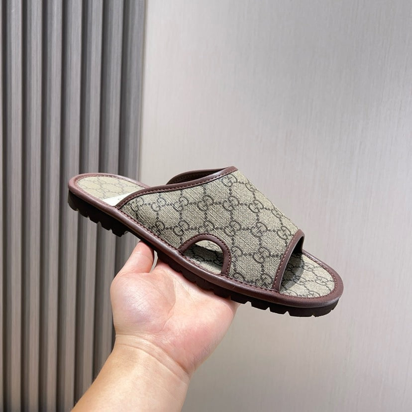 GG Men's Slide Brown Printed Fabric 544369