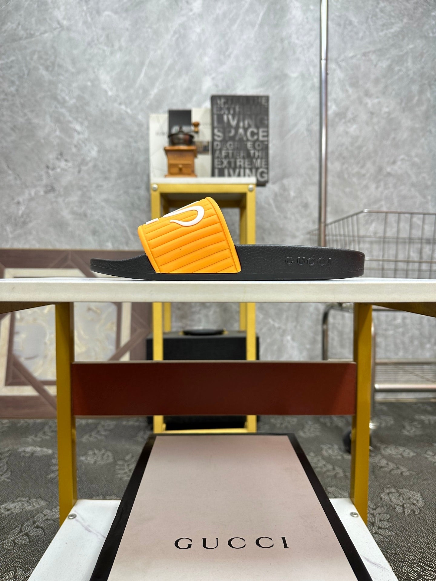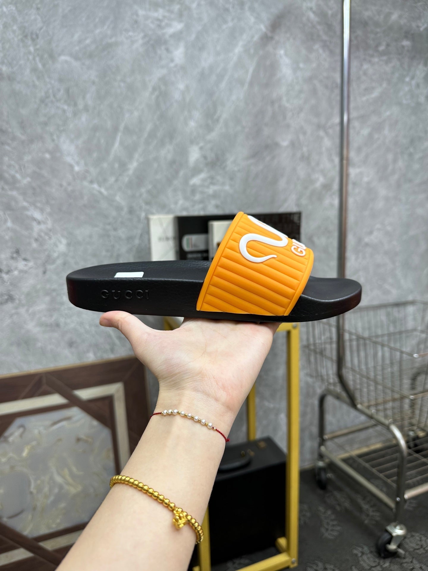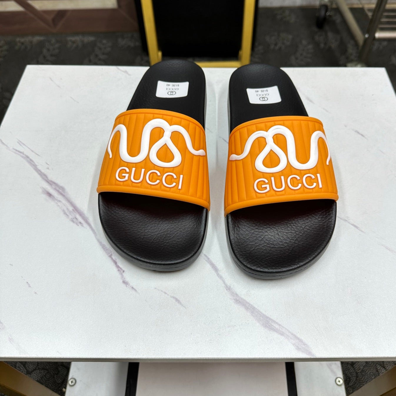 GG Men's Slide Orange Sheepskin Rubber 540093