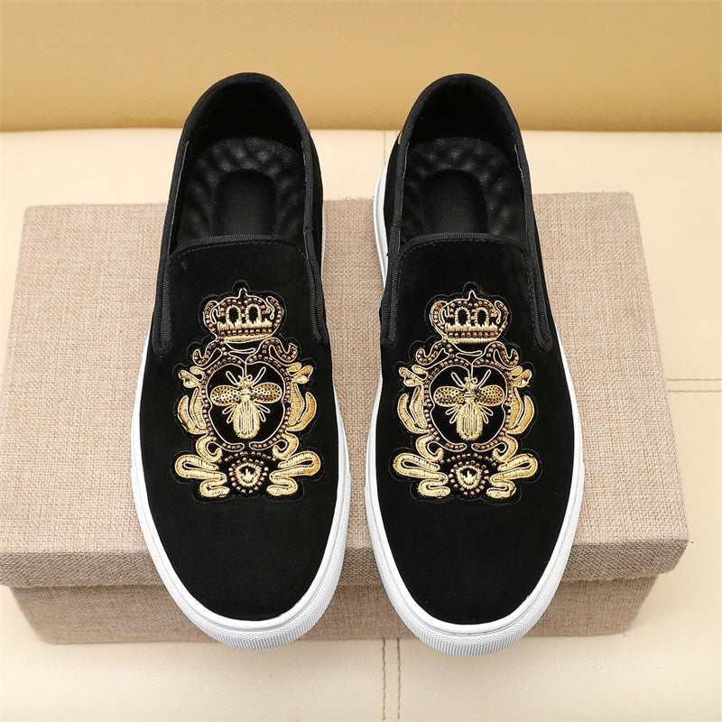 GG Men's Slip-on Loafers Black Gold Suede 545716