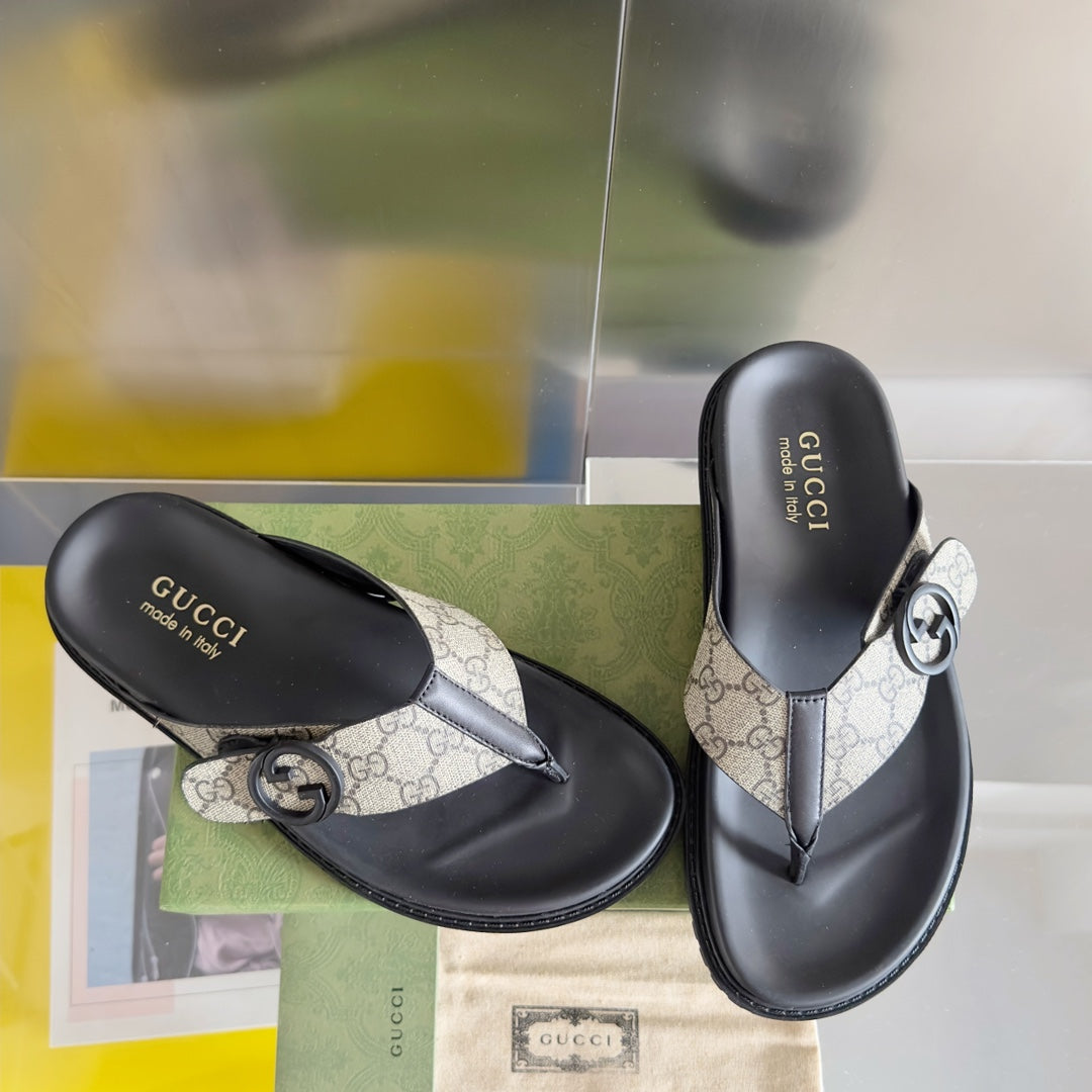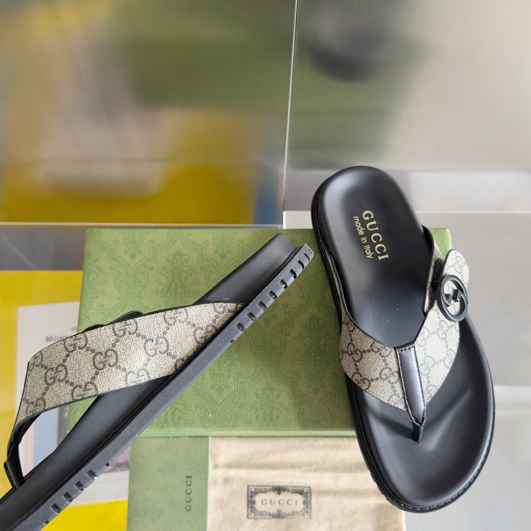 GG Men's Thong Sandals Brown Canvas 558135