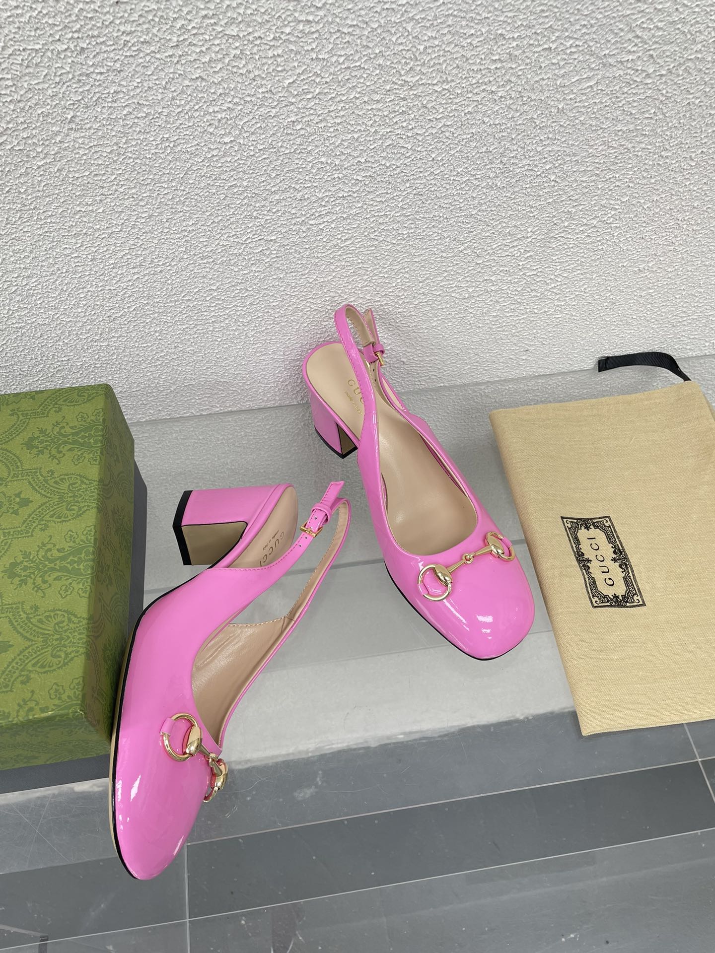 GG WOMEN'S HORSEBIT SLINGBACK 75MM IN FUSICA PINK CALFSKIN