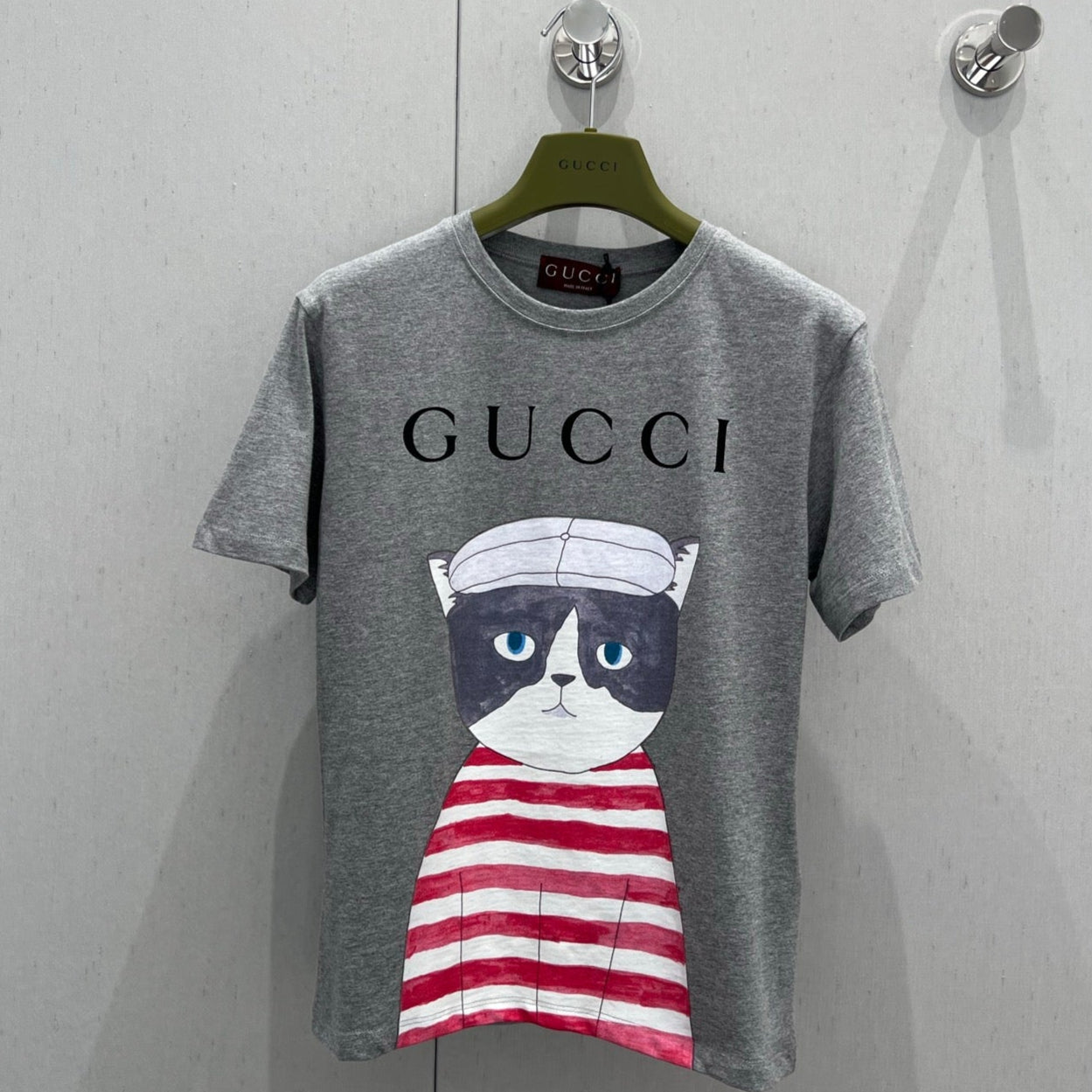Gucci 2025 Cat Print Short-sleeved T-shirt Cotton 212831