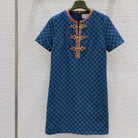 Gucci 2025 Denim Dress Blue Brown Cotton