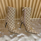 Gucci 2025 Thick-heeled Square-toed Ankle Boots Beige Gold Sheepskin Fabric 498067