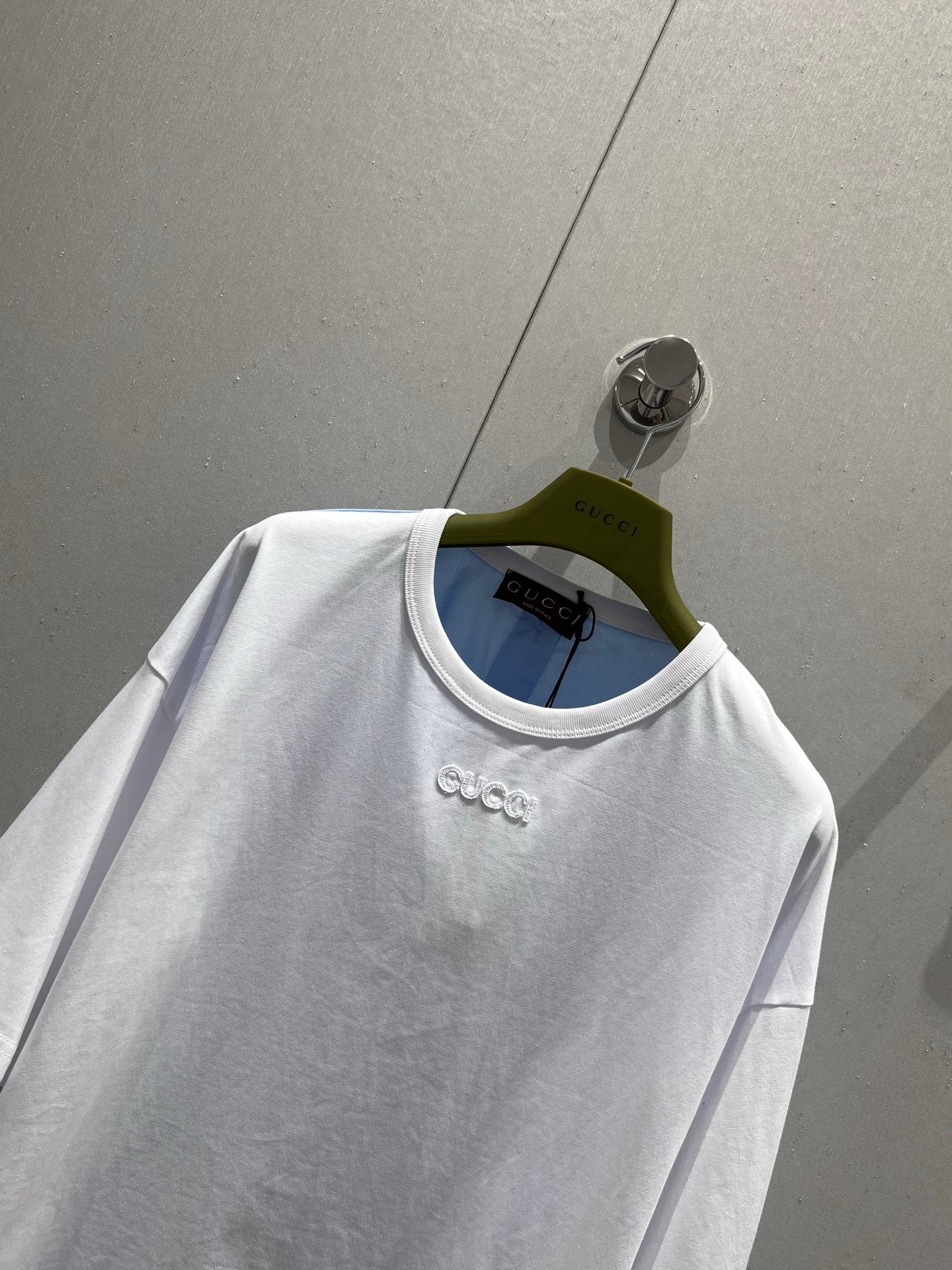 Gucci 25 Round Neck Short-sleeved T-shirt Blue White Cotton 217913