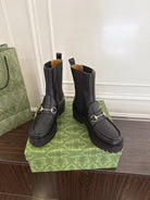 Gucci Horsebit Ankle Boots Black Sheepskin Fabric 490530