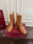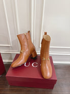 Gucci Horsebit Chunky Heel Ankle Boots Brown Cowhide 490561