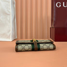 Gucci Jackie Chain Wallet Ebony Brown Canvas Leather 255174