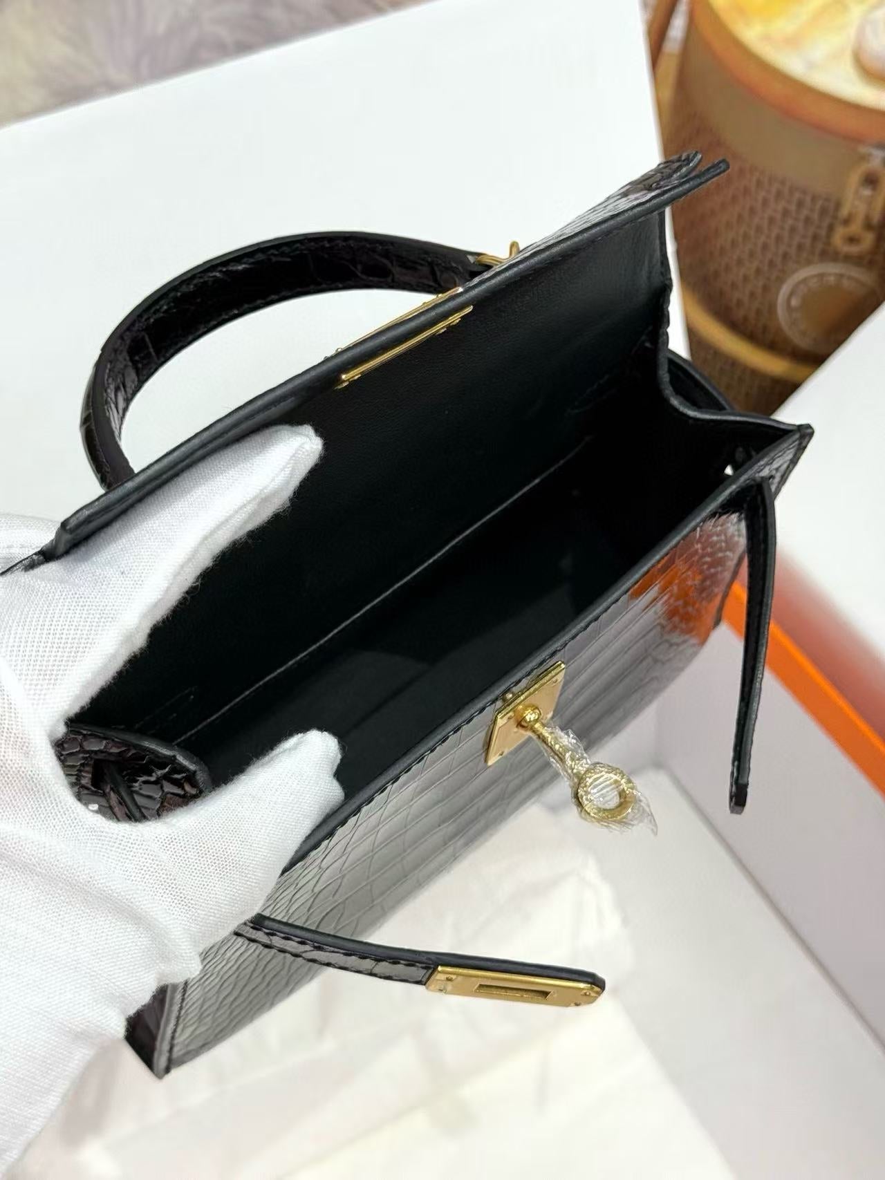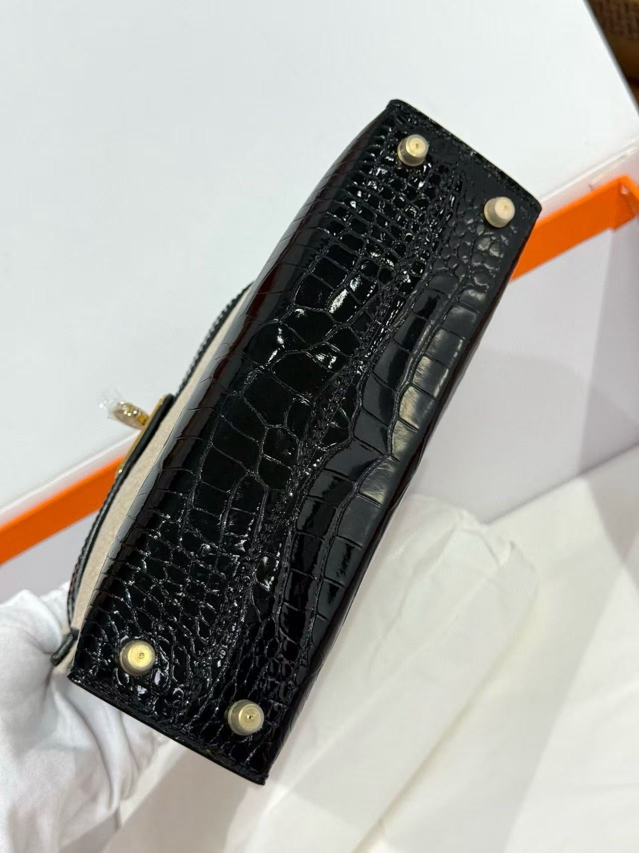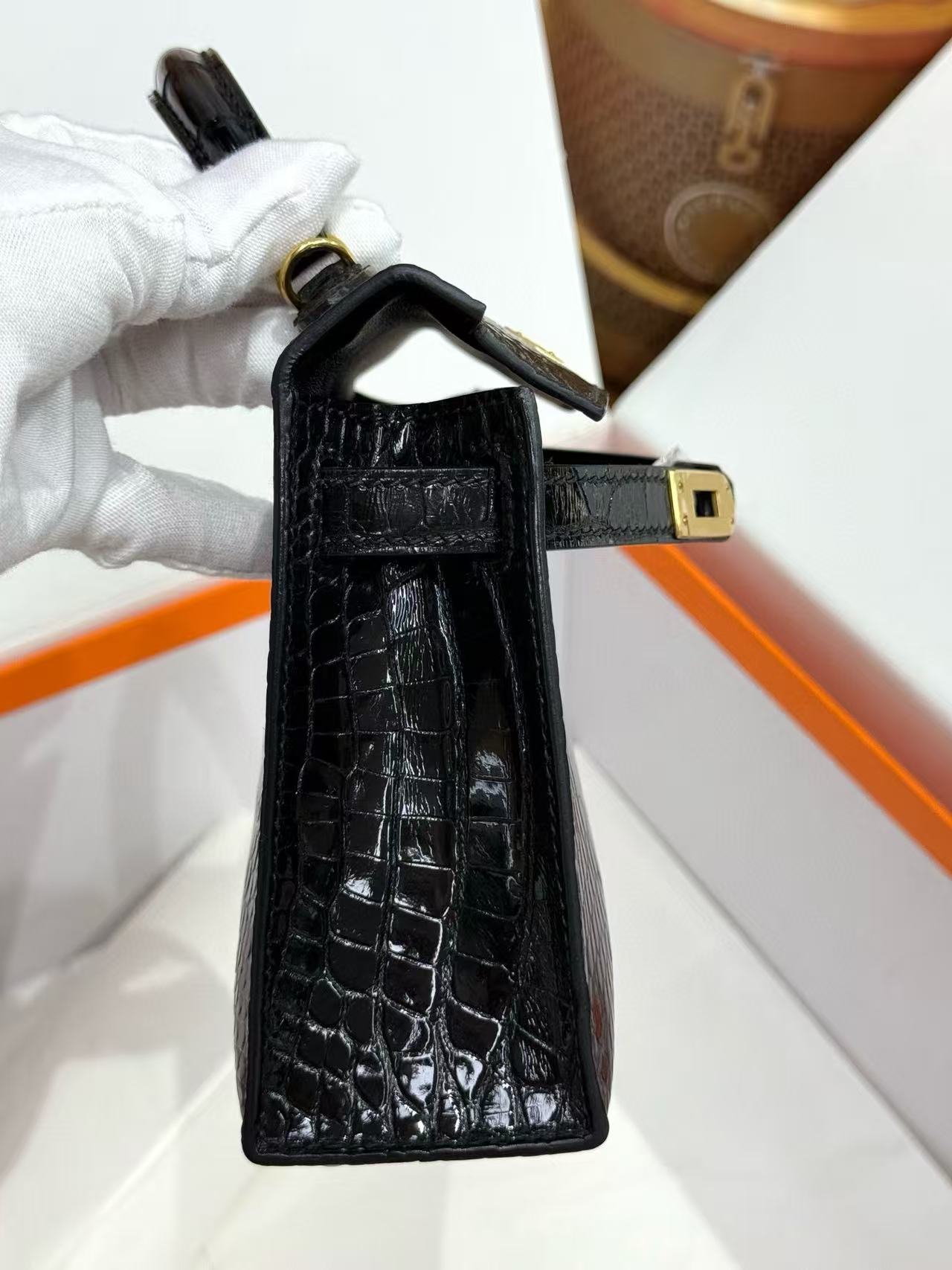Hermès Kelly II Sellier Mini Black Shiny Crocodile Gold Hardware
