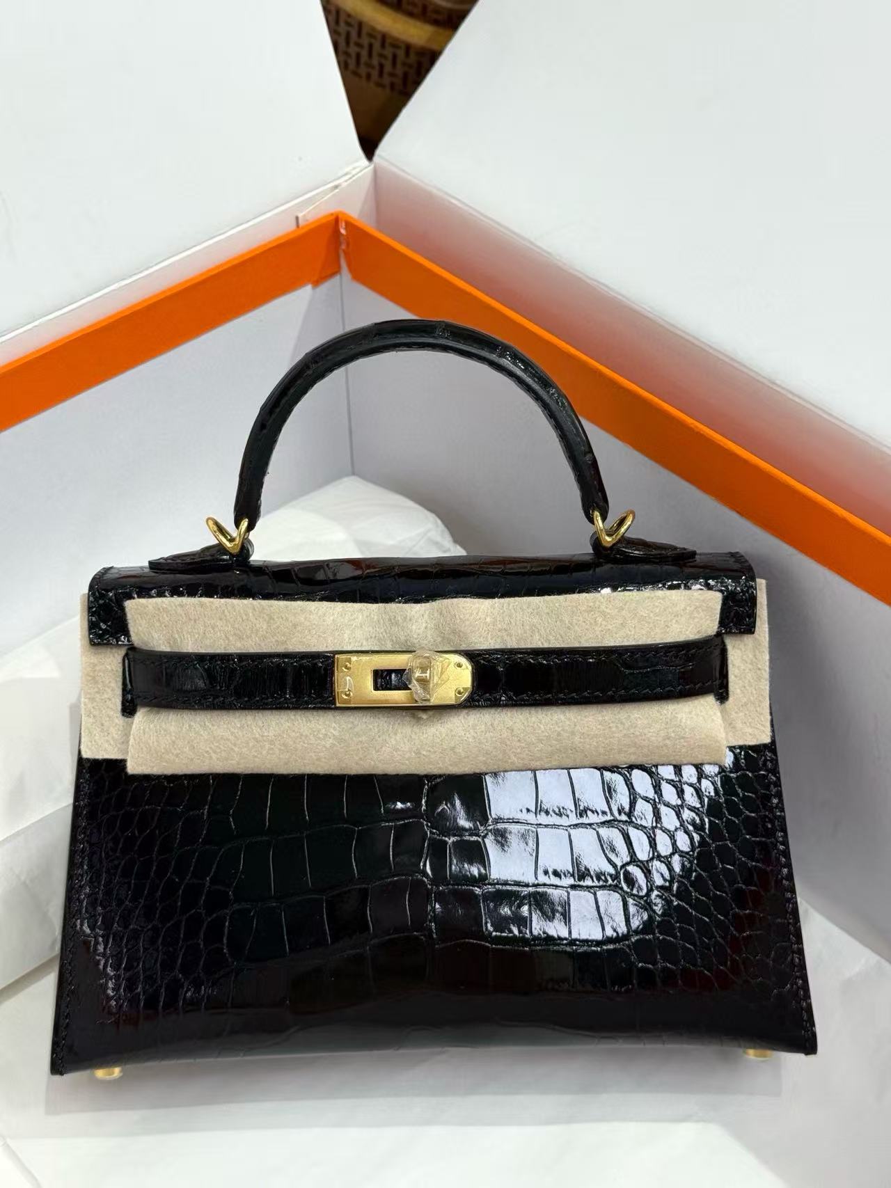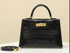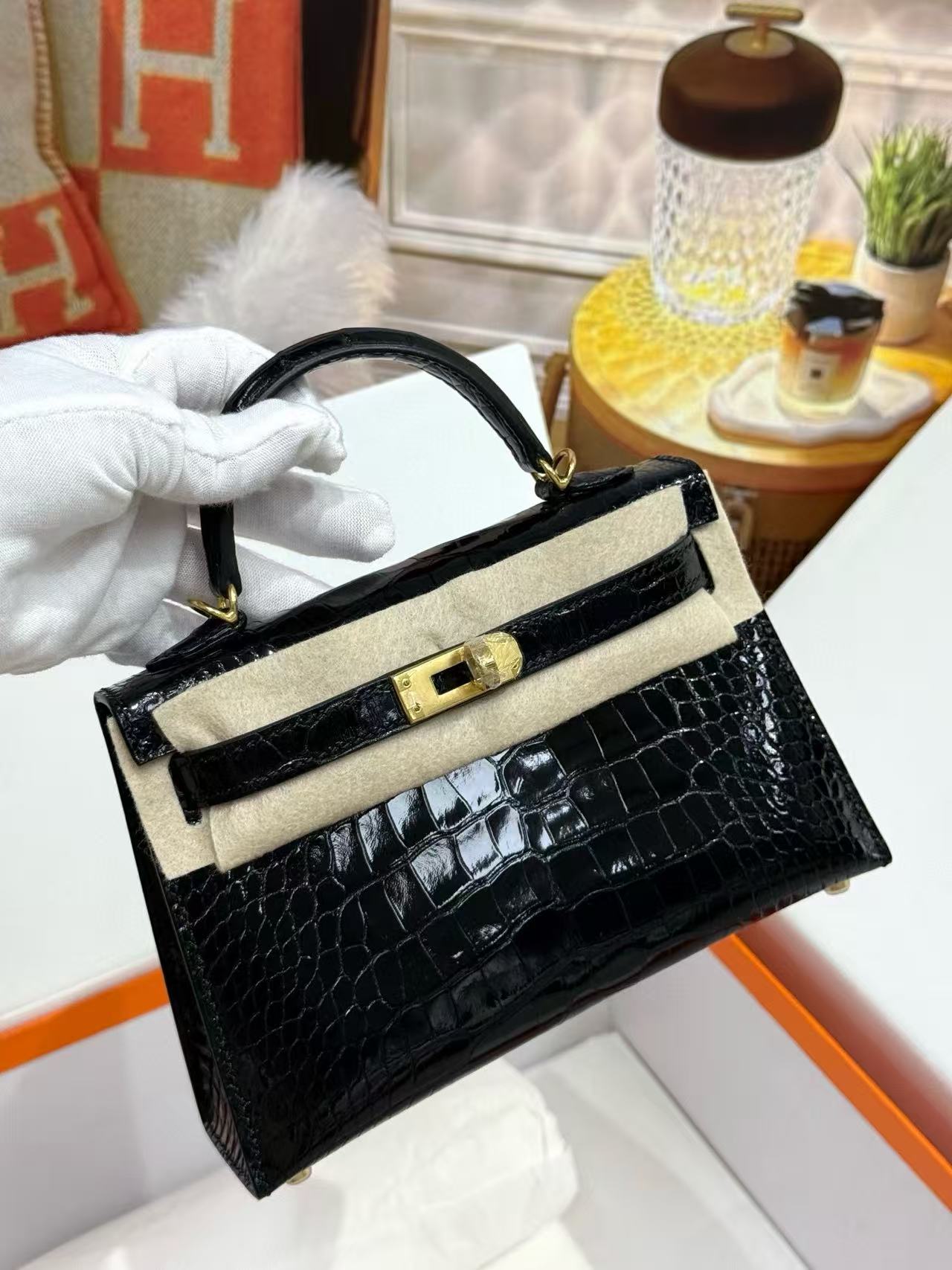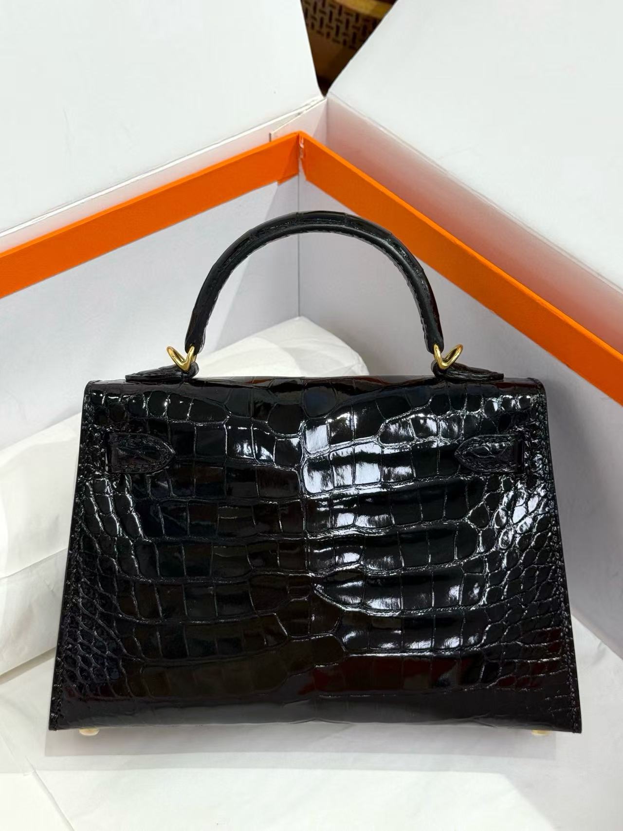 Hermès Kelly II Sellier Mini Black Shiny Crocodile Gold Hardware
