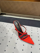 HIGH CRYSTAL STRAP SANDALS IN RED SILK