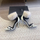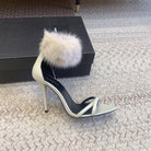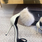 HIGH HEEL SANDAL IN WHITE POLISHED CALFSKIN AND MINK FUR
