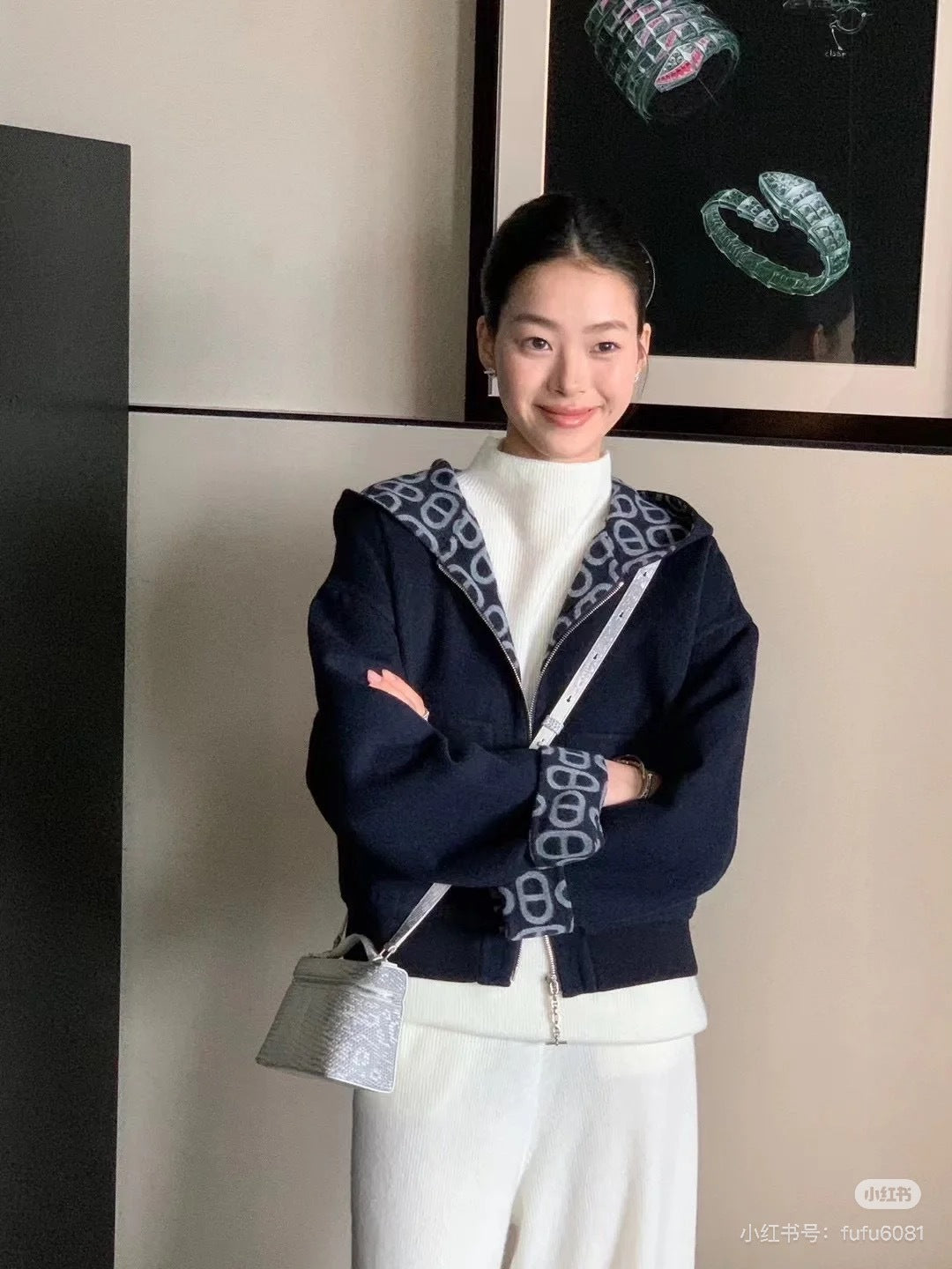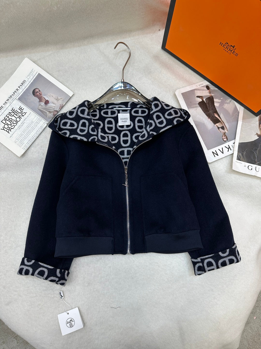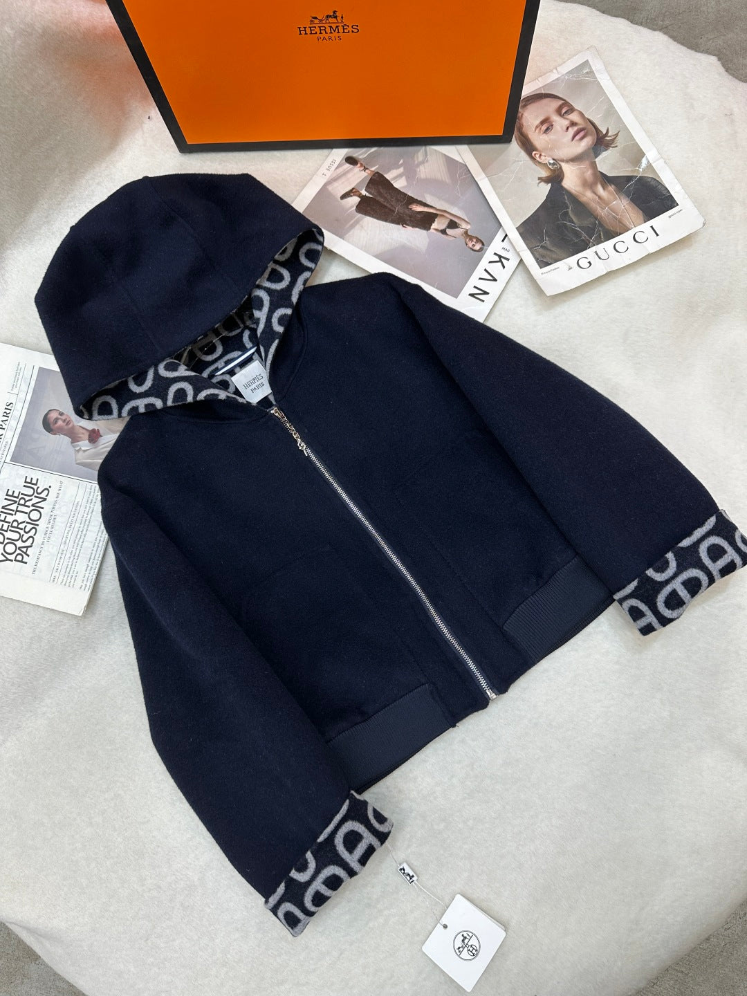 HM 25 Navy Blue Cashmere Cropped Coat 280337