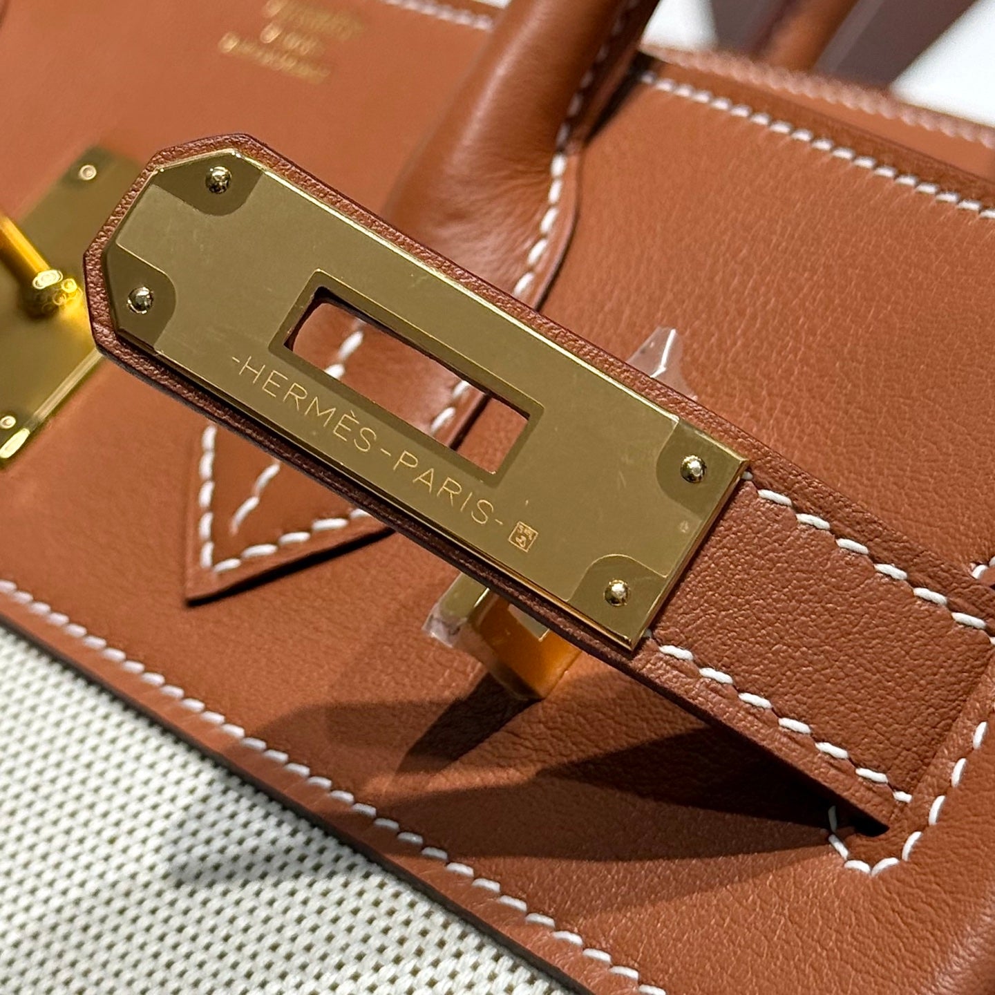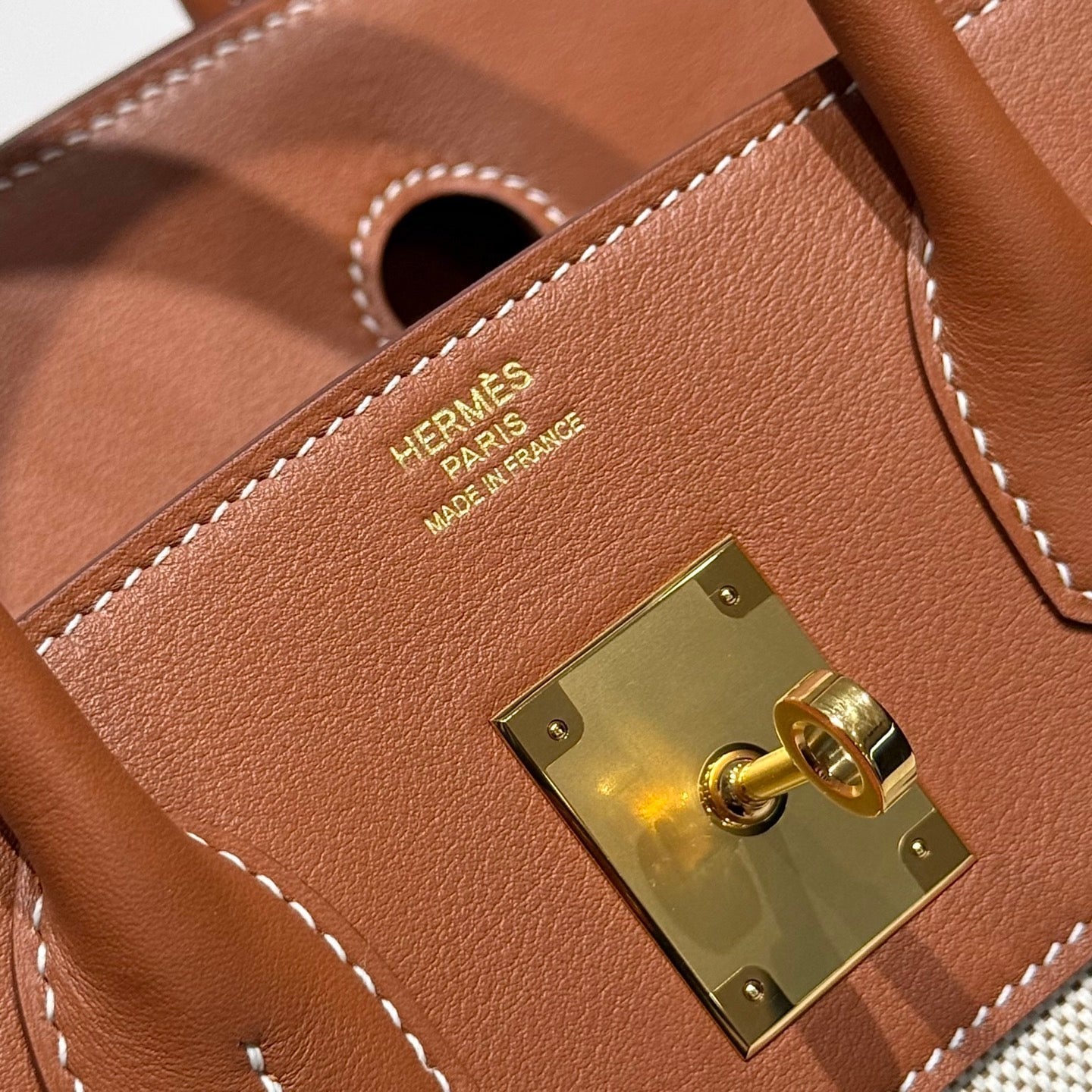 HM Birkin 30 Gold Swift Leather Grey Canvas Gold Hardware
