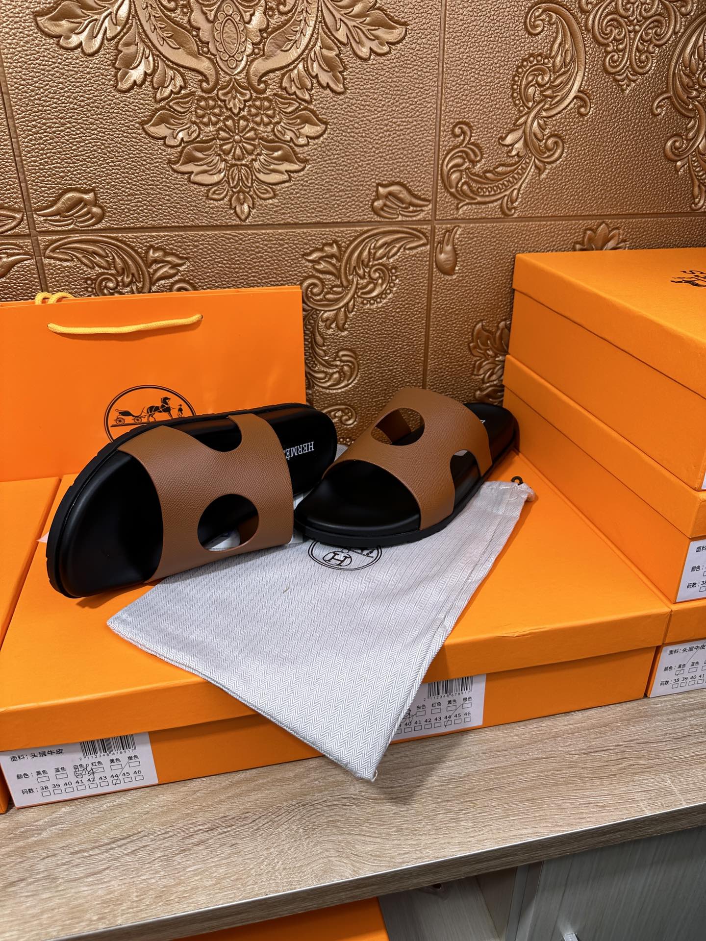 HM CIRCLE CUT SANDAL CARAMEL CALFSKIN